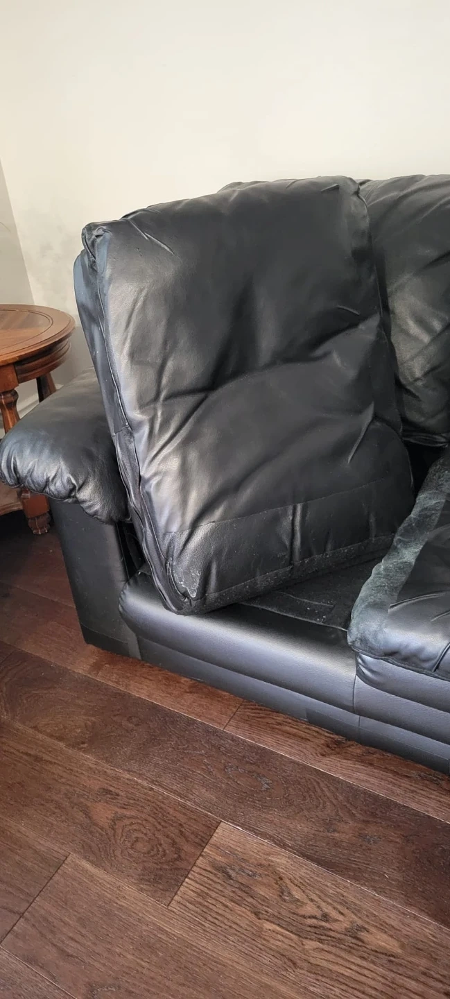 37Selling a 3 seat comfortable black genuine leather sofa (detachable cushions). It's in used condition and would be a great addition to any living room or den. It has a classic look and is ready for a new home! It has some minor scratches and some parts have been repaired with leather repair tape (see photos). But otherwise, still have life in it and functions well FASTEST PICK UP FINCH AVE AND HWY 27 - Smoke free/Pet free home MOVING SALE - MUST BE PICKED UP BETWEEN NOV 10-13 SERIOUS BUYER ONLY - PLEASE DM WITH DATE AND TIME OF PICK UP