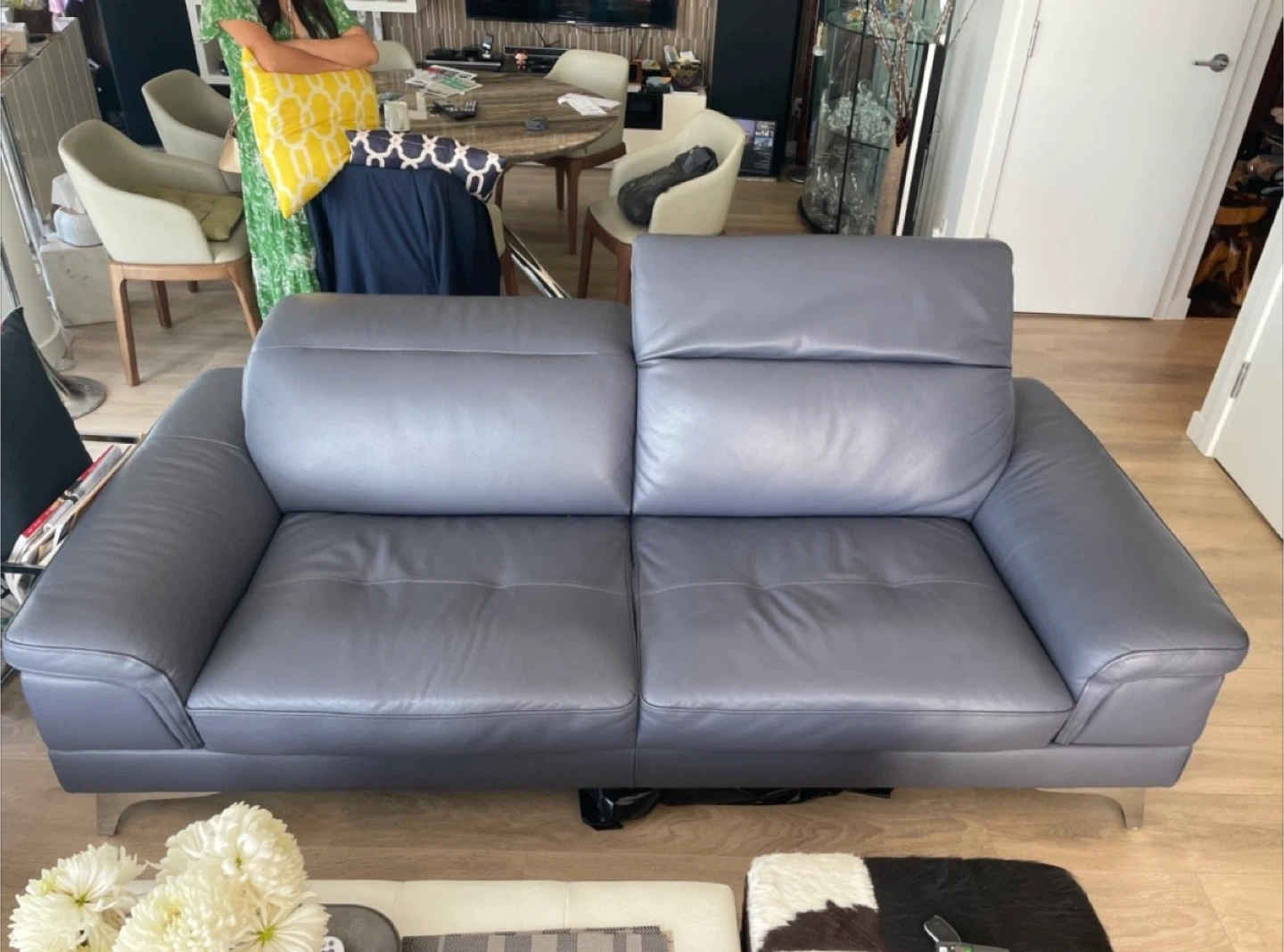 118Selling a comfy grey leather sofa. Genuine leather for entire 3 seat couch It's in good condition and would be a great addition to any living room or den. The leather is soft and supple, and the couch is very supportive. Let me know if you're interested!