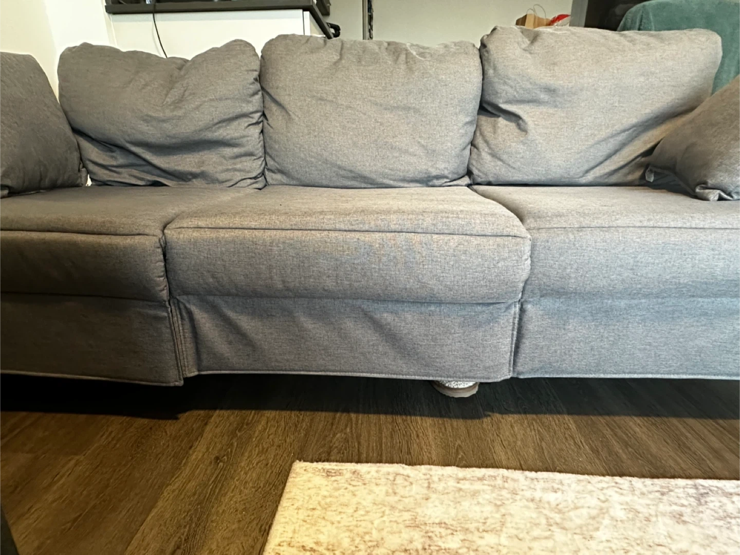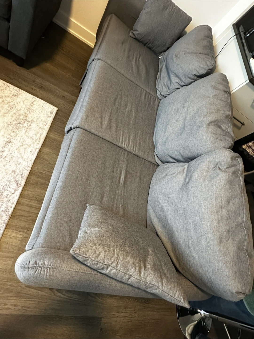 Selling a comfy 3-seater sofa in grey! It's in great shape and ready for a new home. Perfect for lounging and relaxing after a long day. This sofa will bring a cozy vibe to any living space!
