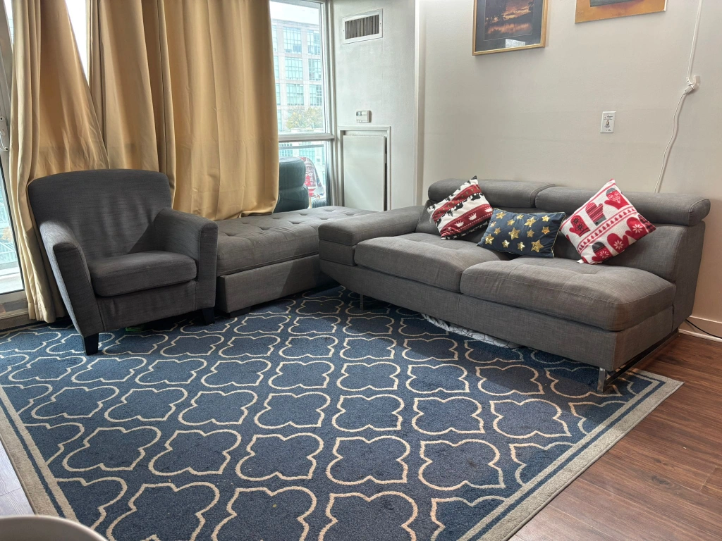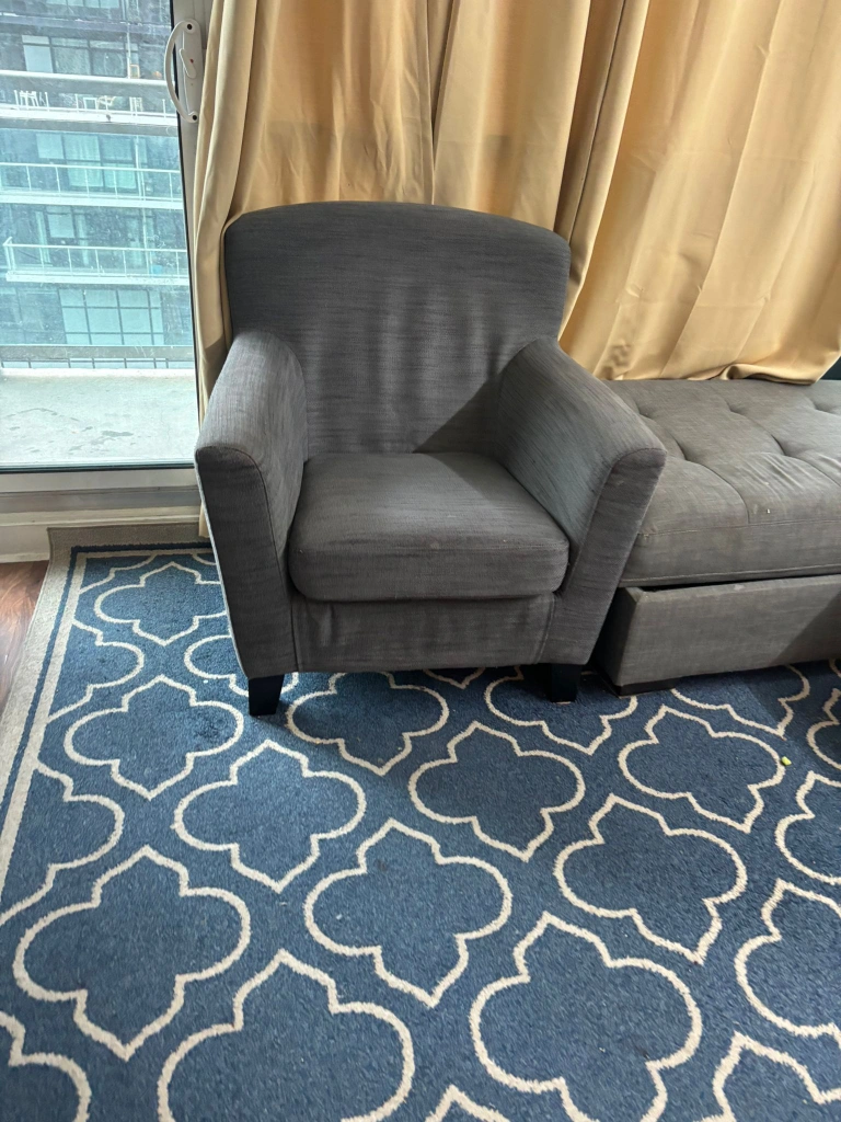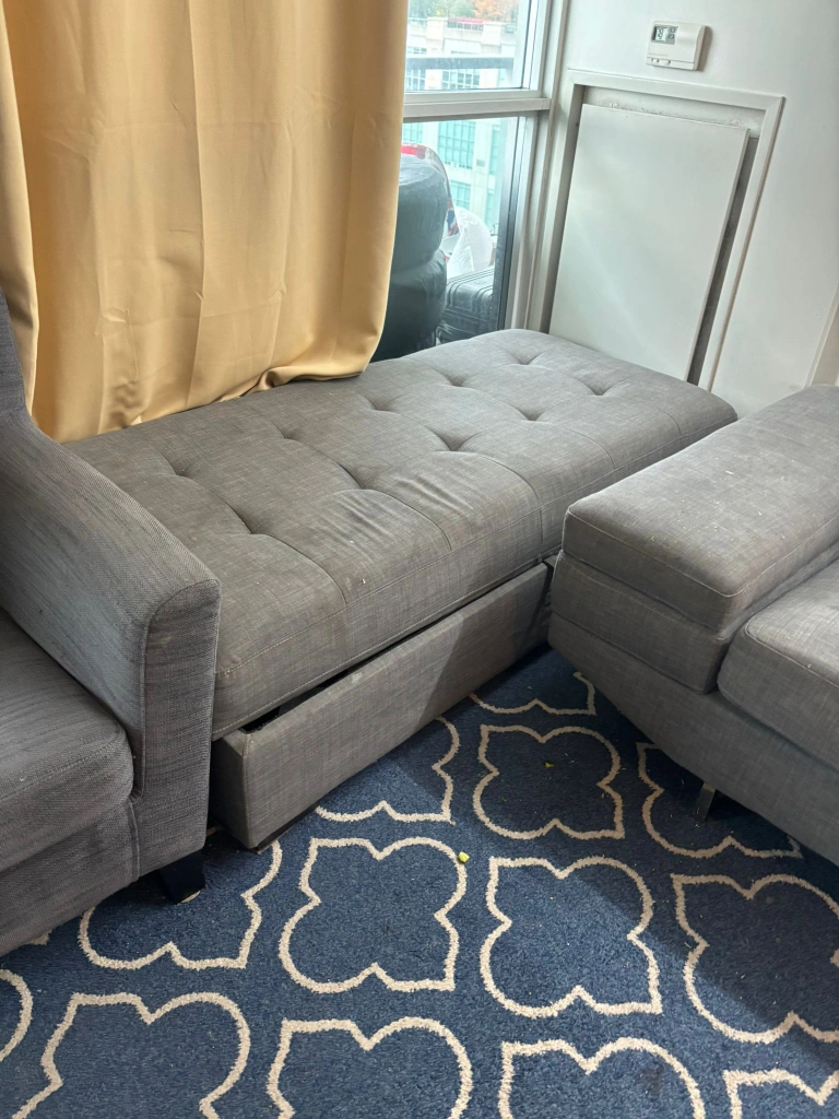 103 seater sofa + Side couch with huge storage+ 1 seater lounger + Huge Carpet for immediate sale. Smoke free, Pet Free Home. Some light marks which can get off with normal fabric shampoo/soap. Intersection: Park Lawn-Lakeshore Blvd West (South Etobicoke) Price: $150 for all. Reason for selling: Moving out of country. Need these gone. Dm me if interested to setup a pickup time. No holds please. Thanks.