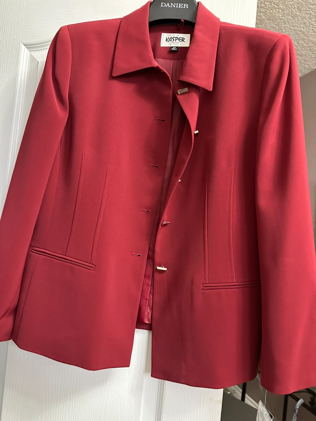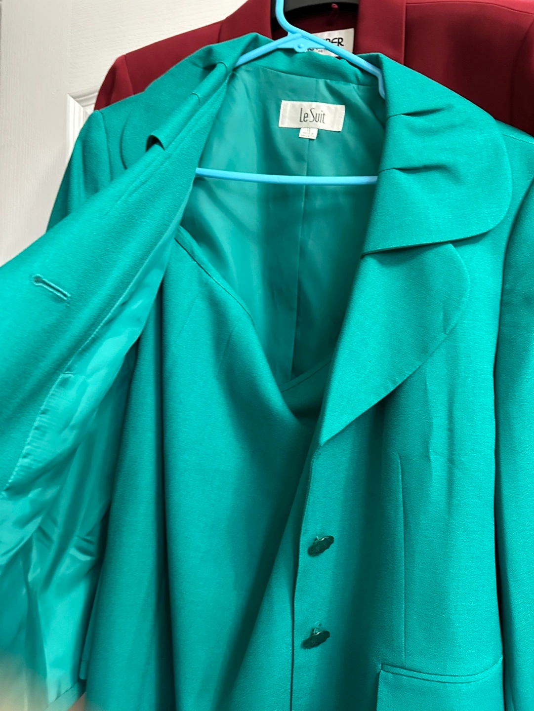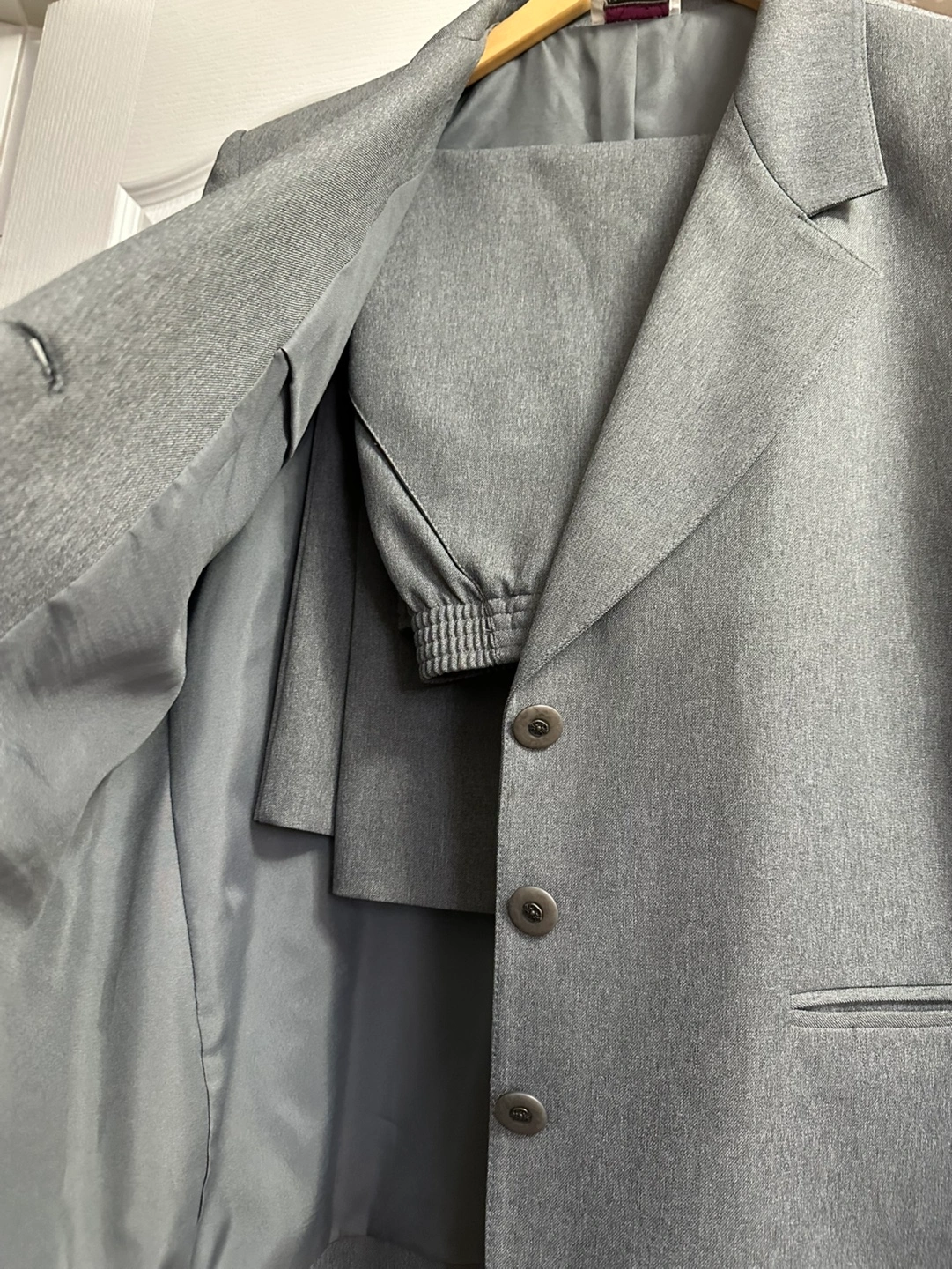 Women's grey pant suit. Can be sold individually, Size 16. Collared blazer, three button closure. Relaxed fit pants with elastic waistband. Brand new with the tag. 3 sets, Grey, burgundy and green
