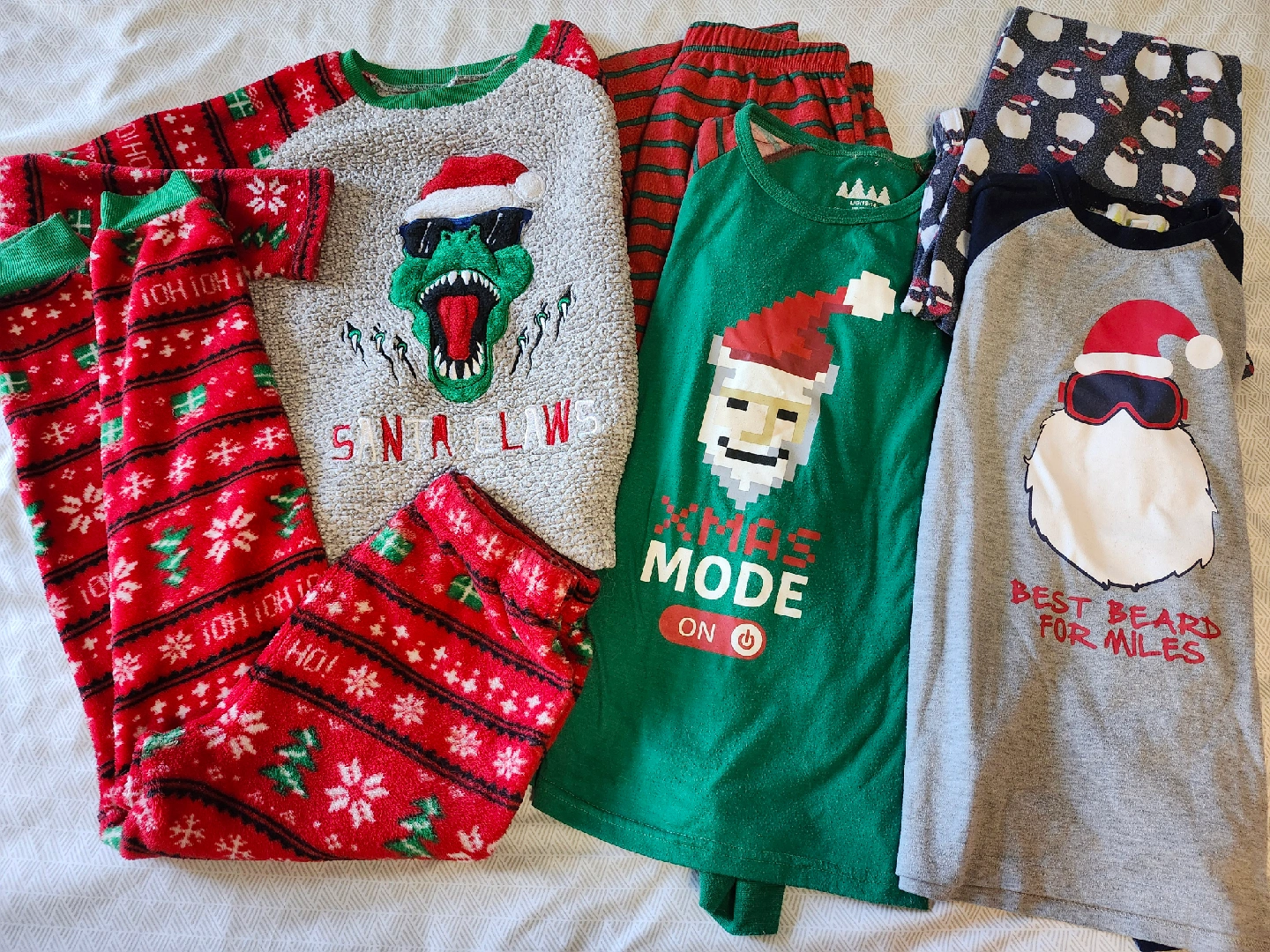 3 sets of holiday pjs that fit size 10/12.