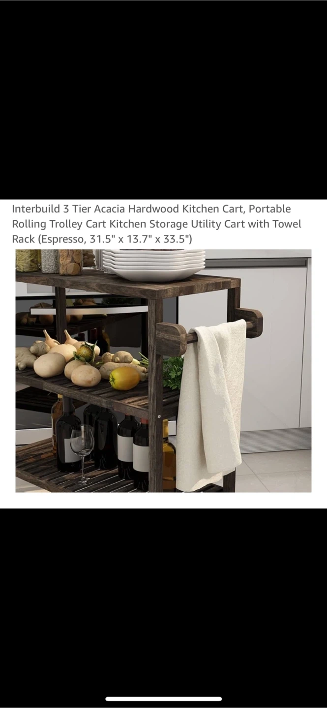 Interbuild 3 Tier Acacia Hardwood Kitchen Cart, Portable Rolling Trolley Cart Kitchen Storage Utility Cart with Towel Rack (Espresso , 31.5" x 13.7" × 33.5"') Great bar cart ! Brand new in unopened box