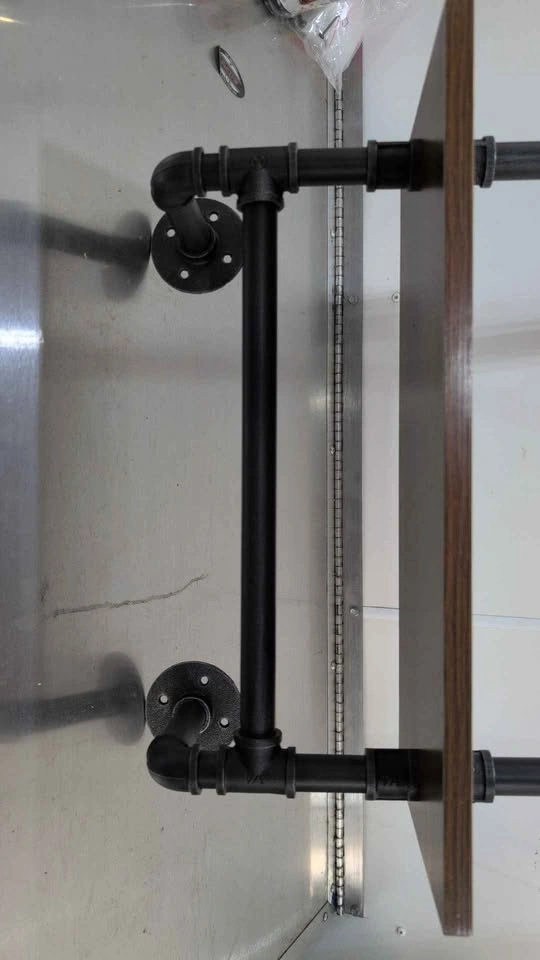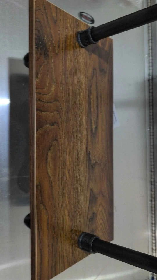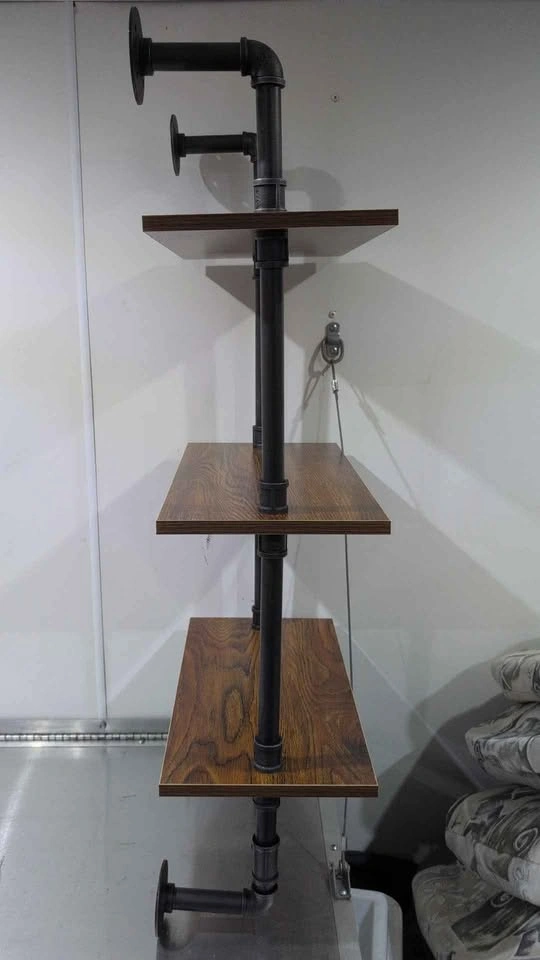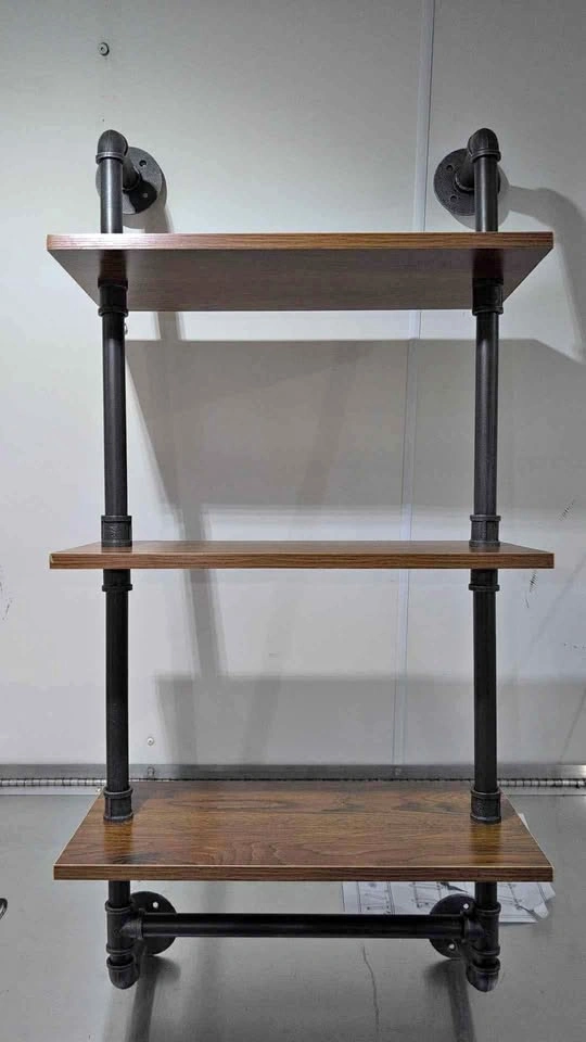 103 tier industrial pipe shelf. Made with real ¾ inch steel pipe. Brand new never installed. I just assembled it today. Comes with wall mounting hardware. Shelves measure 19.5 inches wide, 10 inches deep, 11.5 inches between the shelves. Overall height 41 inches.