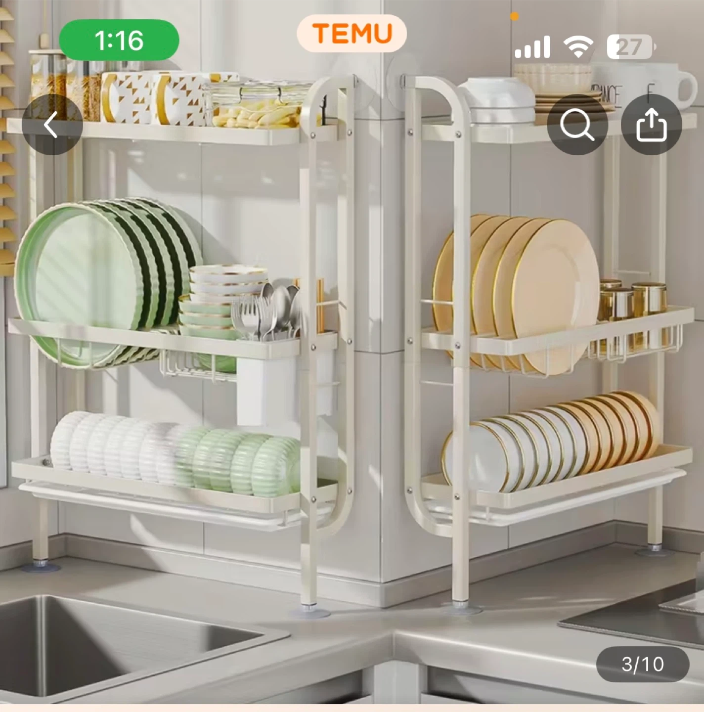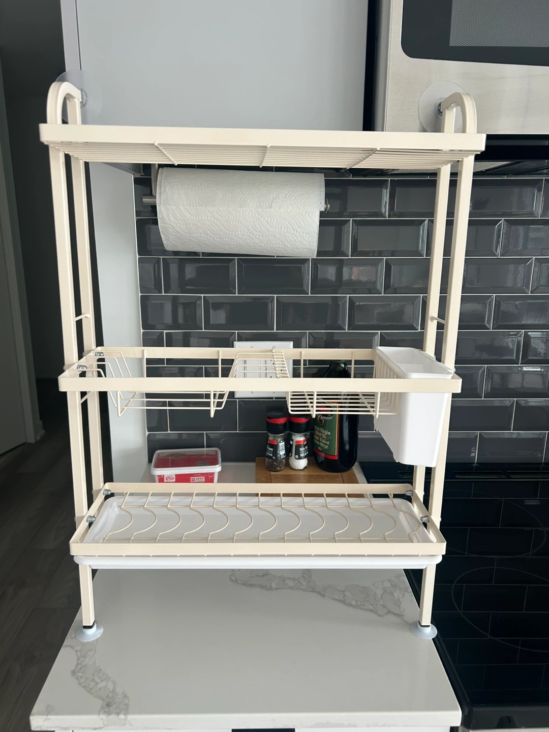 10Declutter your kitchen space with this handy 3-tier kitchen rack organizer! It's perfect for storing dishes, spices, and other kitchen essentials. The rack is in great condition and ready to help you maximize your counter space. Dimensions are approximately 66.5cm (height) x 45cm (width) x 15.5cm (depth). Didn’t fit in my house that’s why I’m selling it, it’s new !