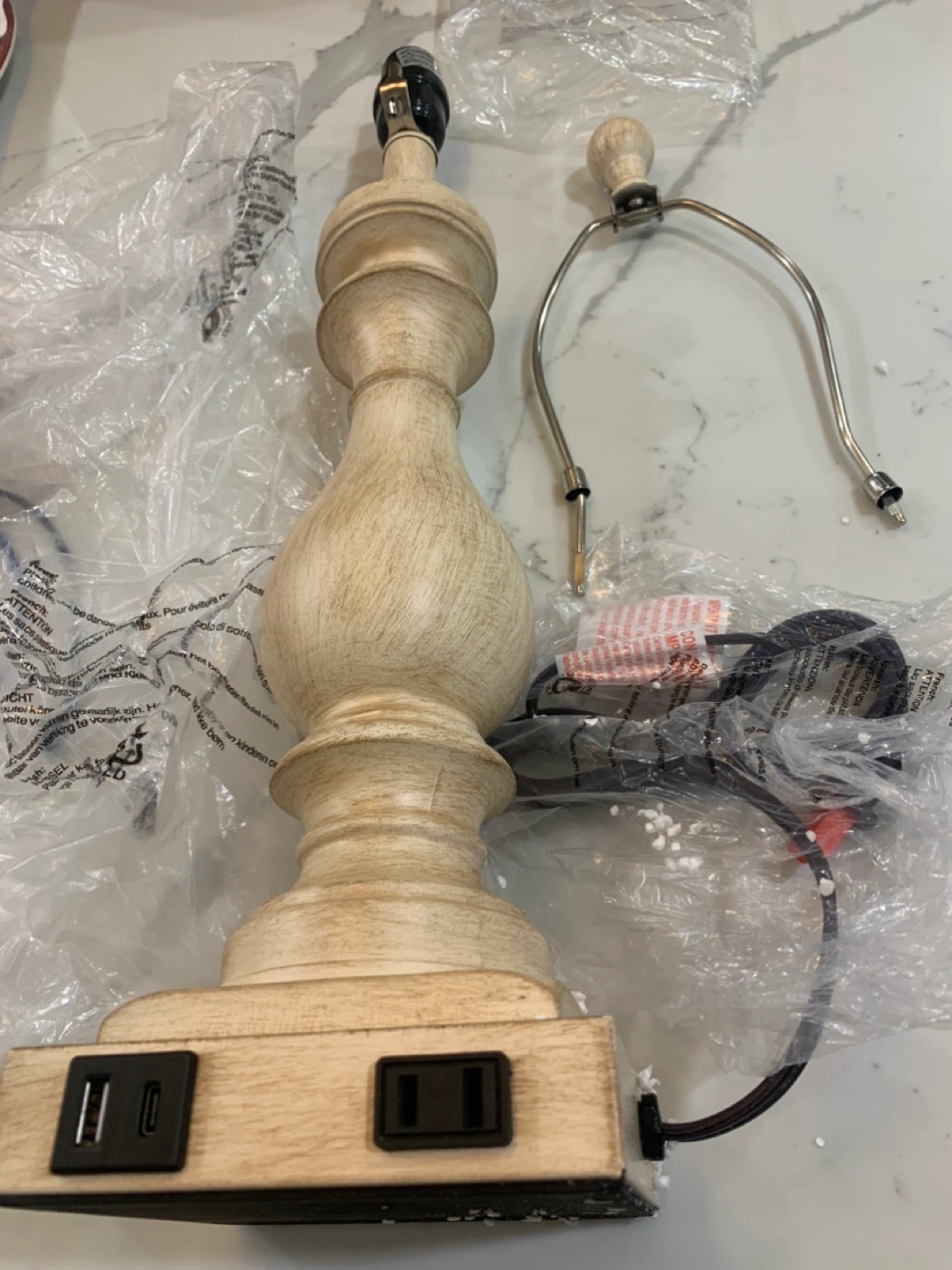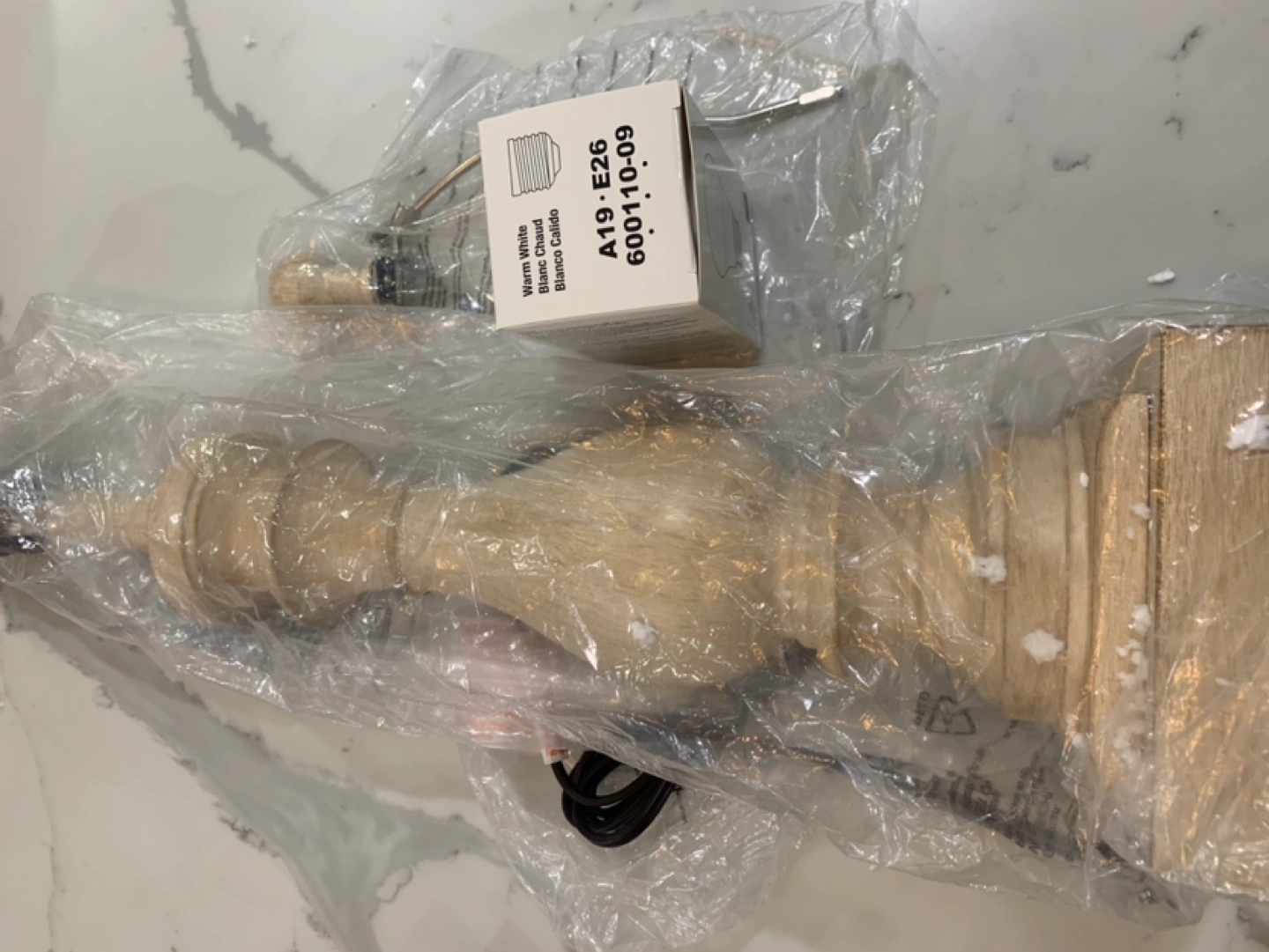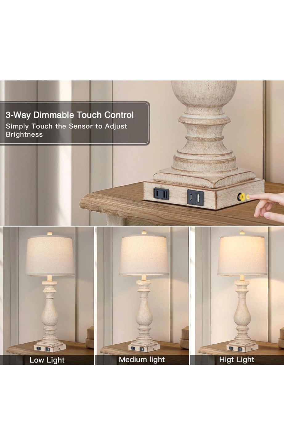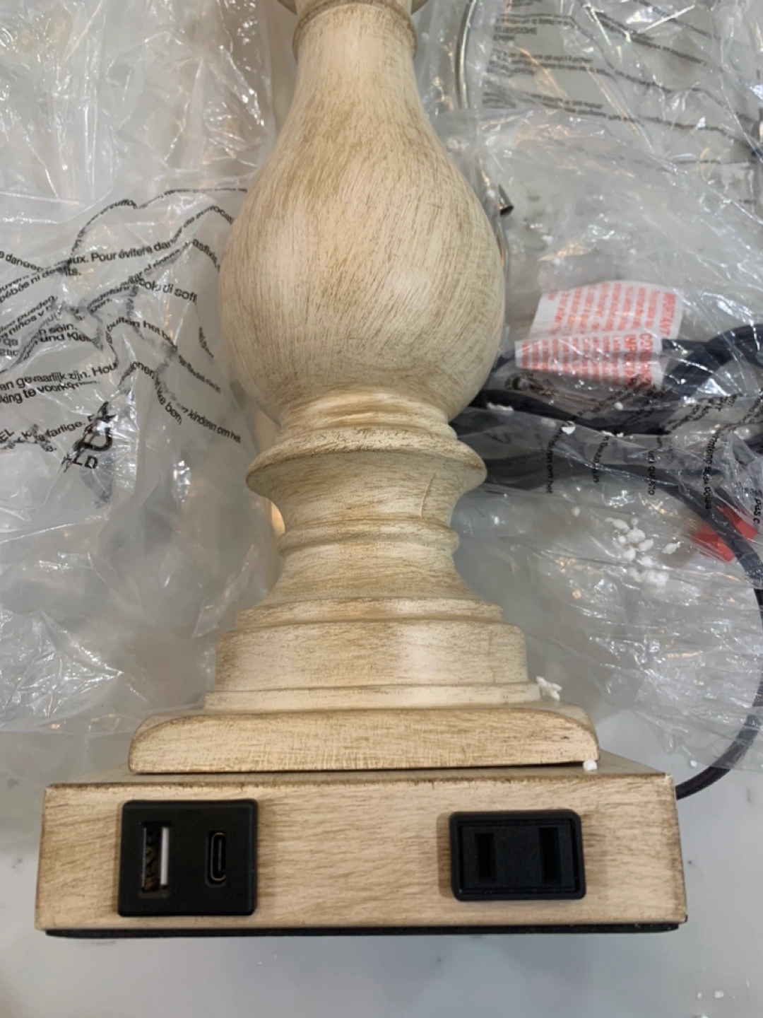 28Beautiful off-white table lamp. Features a 3-way dimmable touch control and built-in USB port. Off-white fabric shade included. New in box.