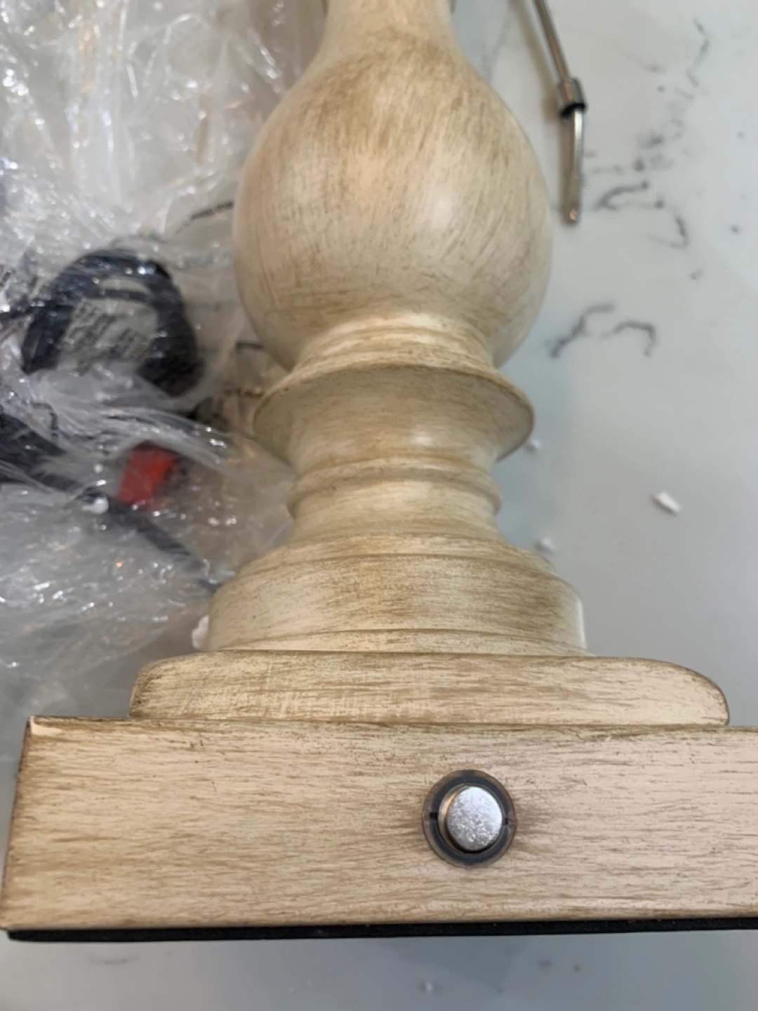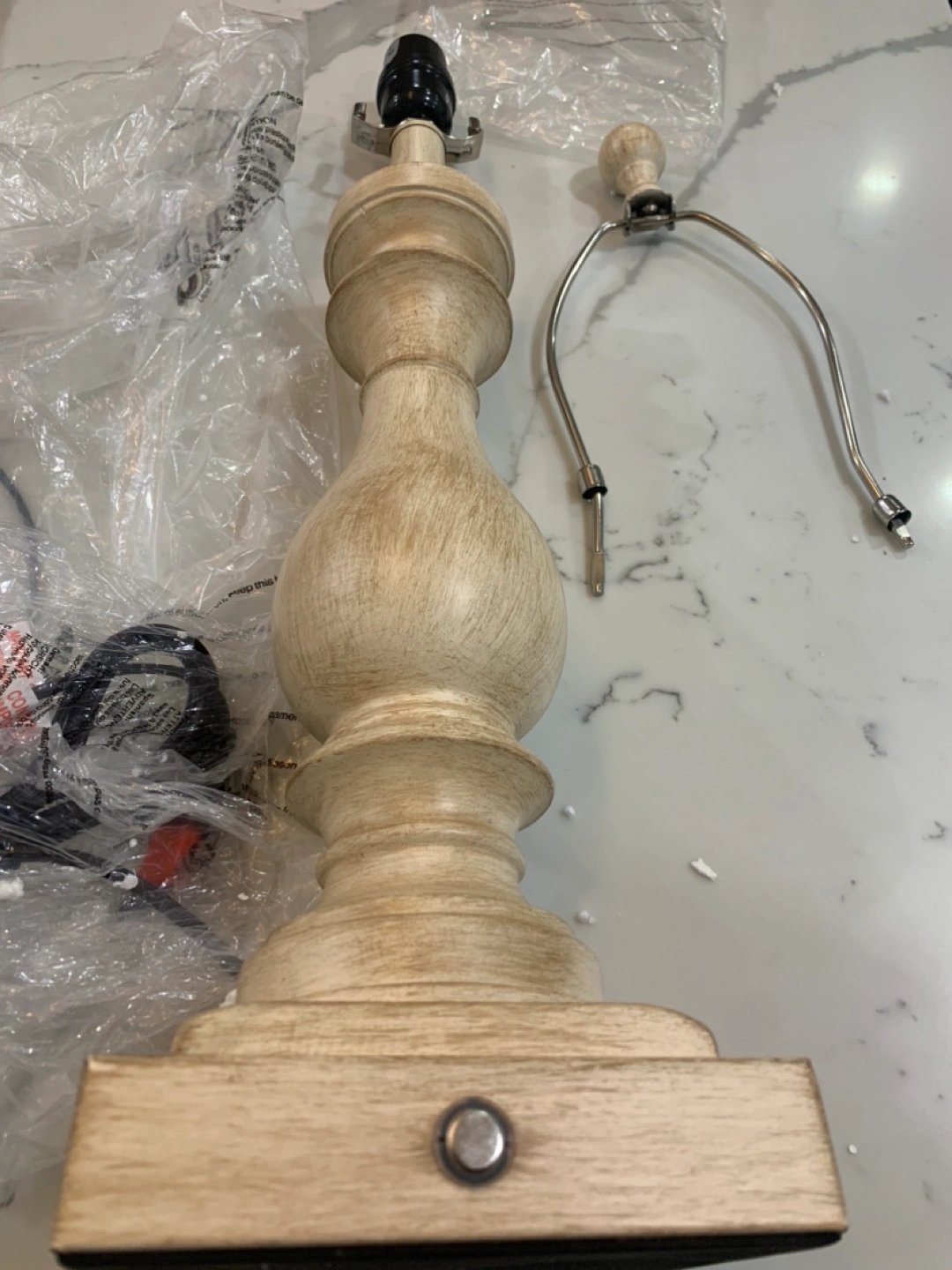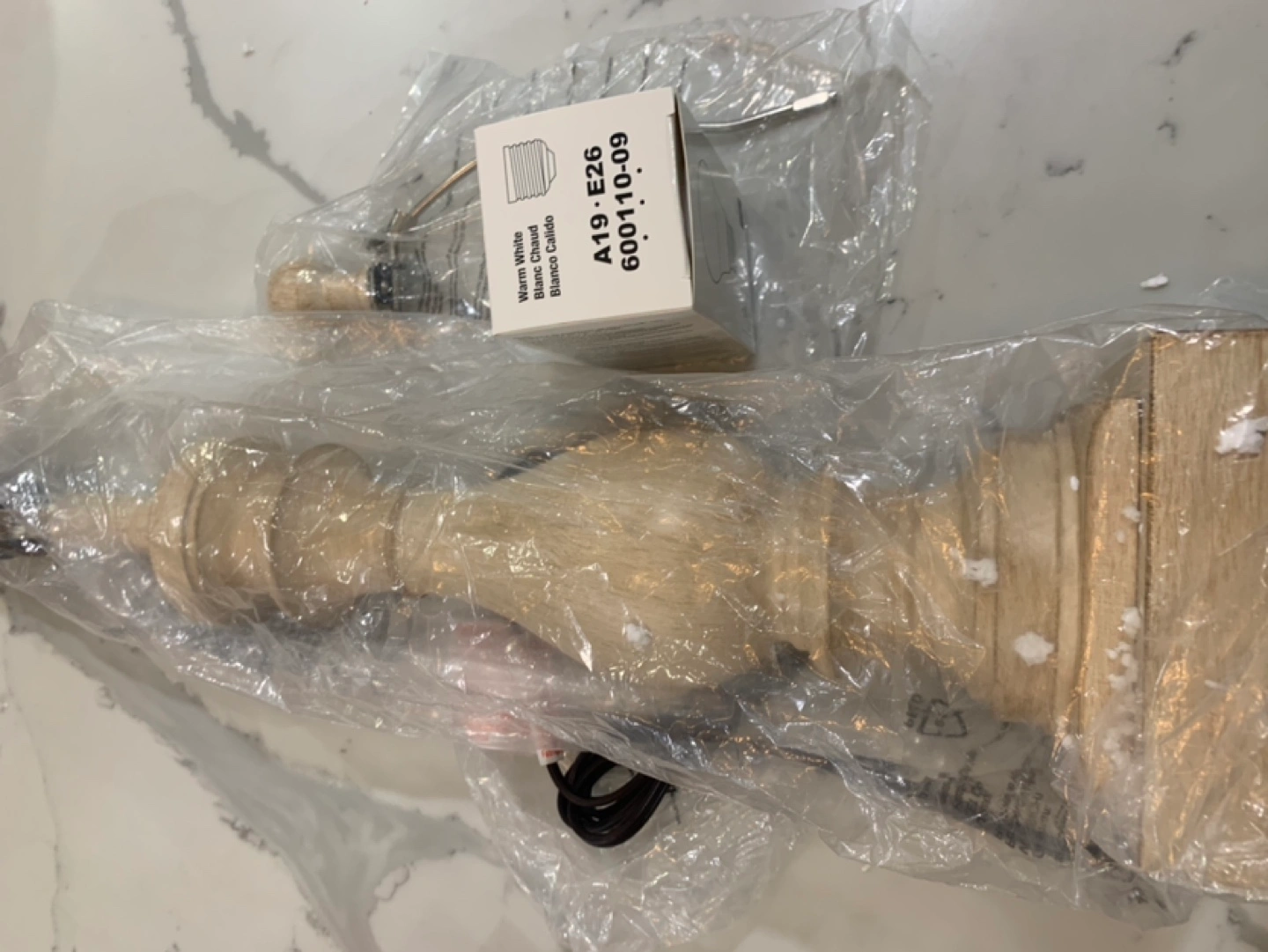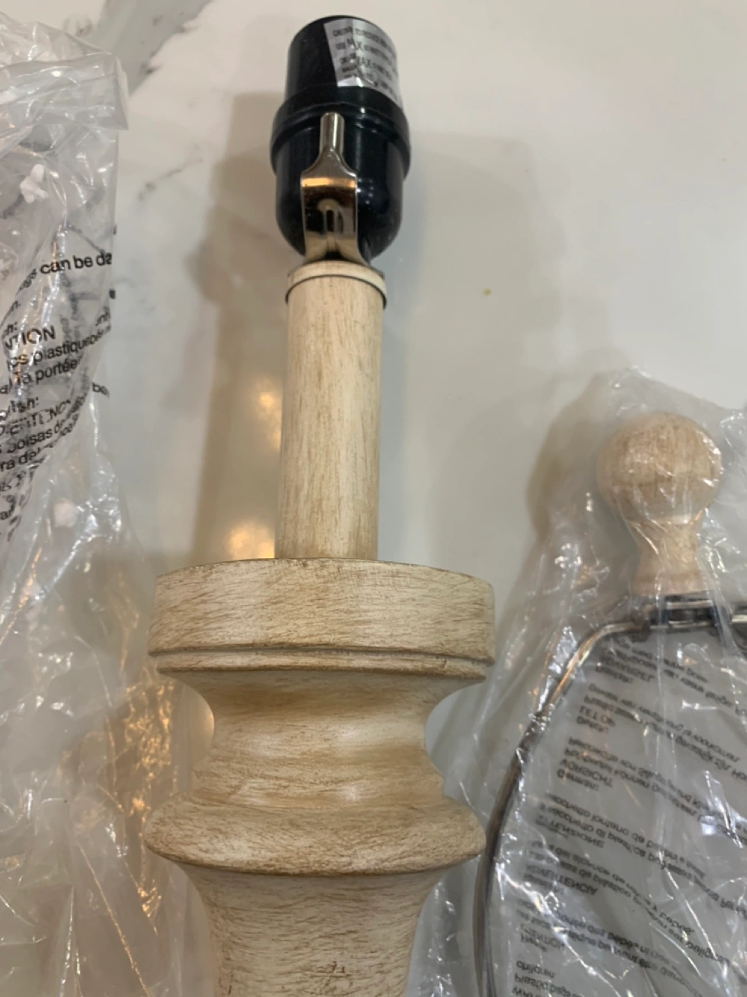 28Beautiful off-white table lamp. Features a 3-way dimmable touch control and built-in USB port. Off-white fabric shade included. New in box.