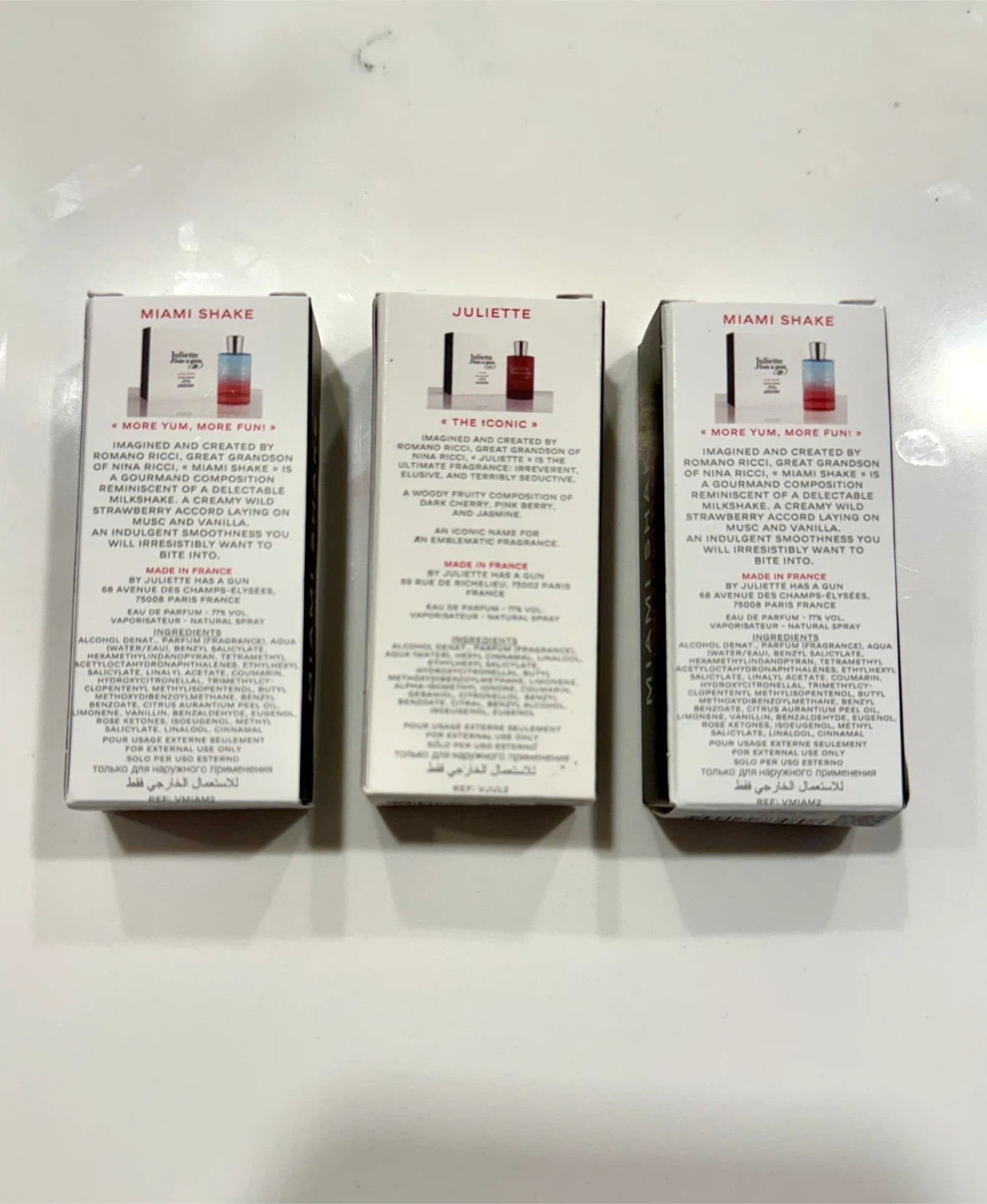 329Selling 3 Juliette Has a Gun (2 Miami Shake + Juliette) fragrance! 3 x 1.7ml New