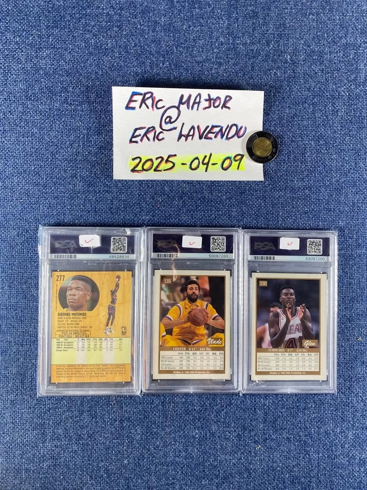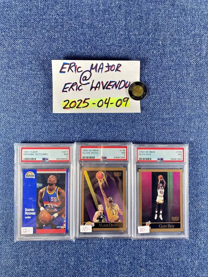 733 x PSA 7 Graded Cards From Various BasketBall Players 1990-91 -1990 Skybox Glen Rice PSA 7. -1990 Skybox Vlade Divac PSA 7. -1991 Fleer Dikembe Mutombo PSA 7. I'm located in Etobicoke, near Rexdale & 401. I have much more for sale, so please check my other listings. I have all of these available: -Graded & Raw Cards Various Players -Graded & Raw Cards Young Guns -Auto's and Numbered Cards -Sport Cards Sets -Wax Era Sealed Boxes -Non Sport Sets -McDonald / Tim Horton's Cards -Cards Accessories (Penny sleeves-sheets-Boxes) -Beckett Books -Official Guide & Record Books -Sports Wall Decor -Chandelier-Table Lamps -Arts and Oil Paintings -Watches of all prices and Quality Please send me a message if there anything you are looking for. I will make a better price the more you buy. Thank you!