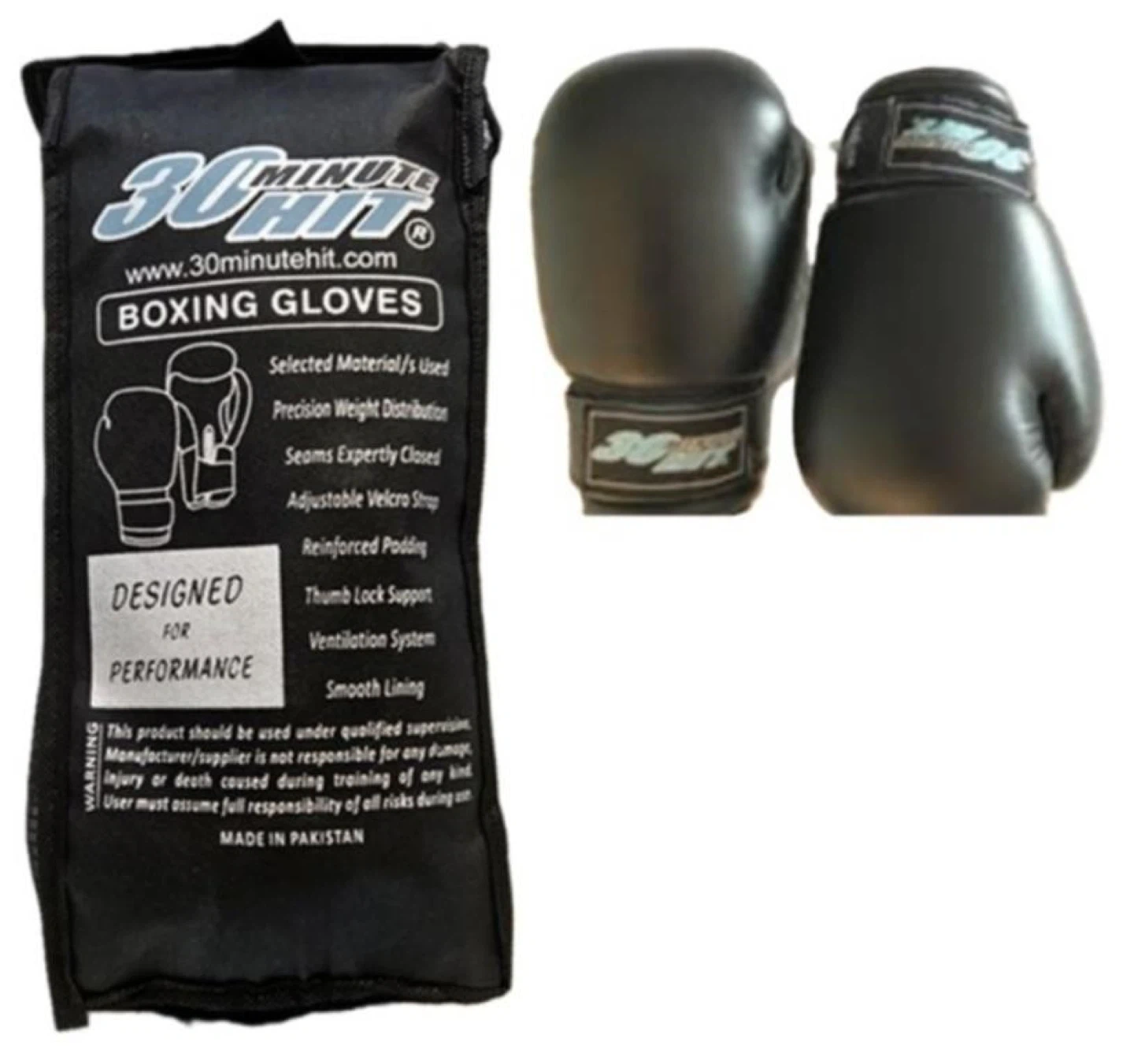 65Selling a pair of 30 Minute Hit boxing gloves! These gloves are designed for performance, with selected materials and expertly closed seams. They feature adjustable Velcro straps, reinforced padding, thumb lock support, and a ventilation system, plus a smooth lining. Made in Pakistan