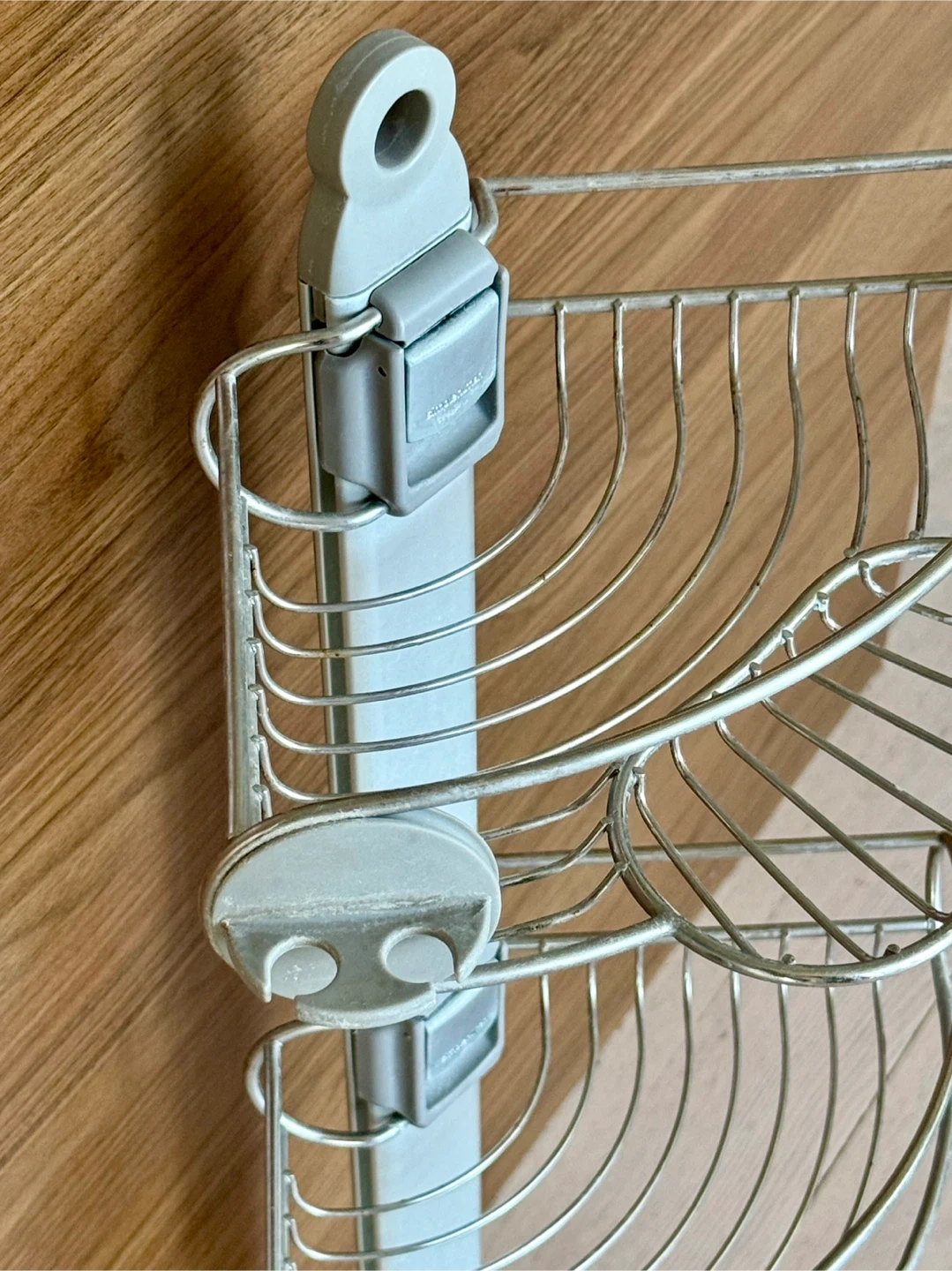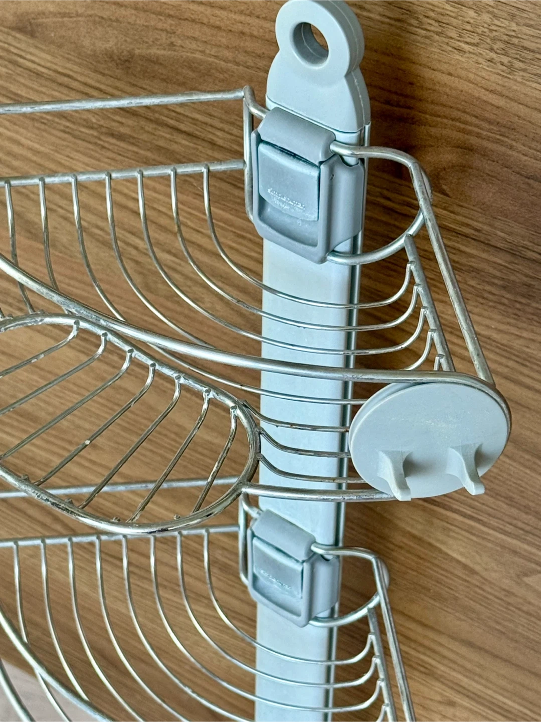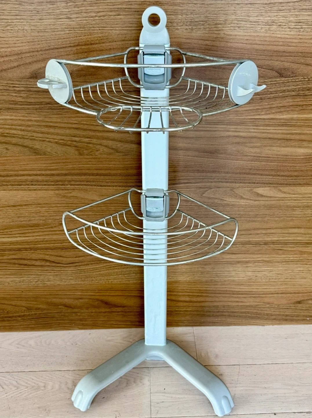 This shower caddy by SimpleHuman features a tension pole where you can customize the height of the 2 wire shelves. It also has hooks for razors / wash cloths. It also have adjustable levels on the feet to strike the perfect balance. This caddy is arguably one of the best for organizing your shower essentials and maximizing space. 30” H x 13” W x 9” D King East / Parliament St.