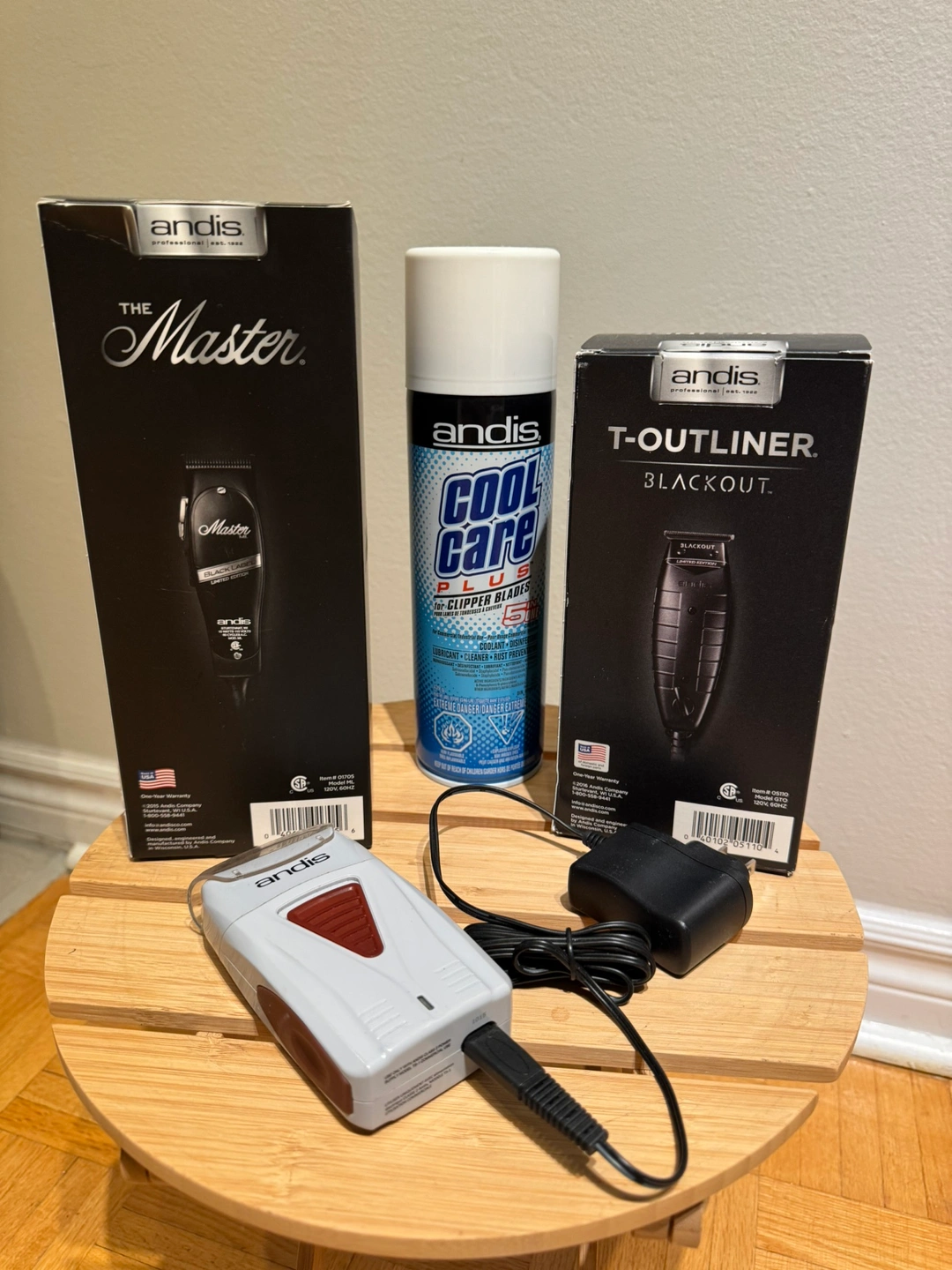 Andis the masters and T-Outliner blackout limited edition as well as an Andis shaver and can of cool care