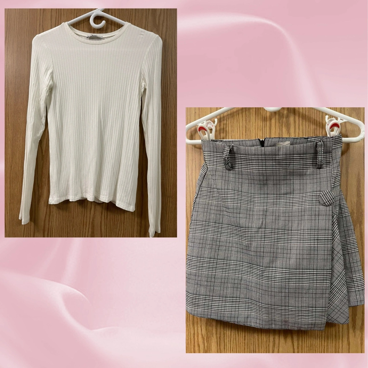 White Long Sleeve Top and Plaid Skirt