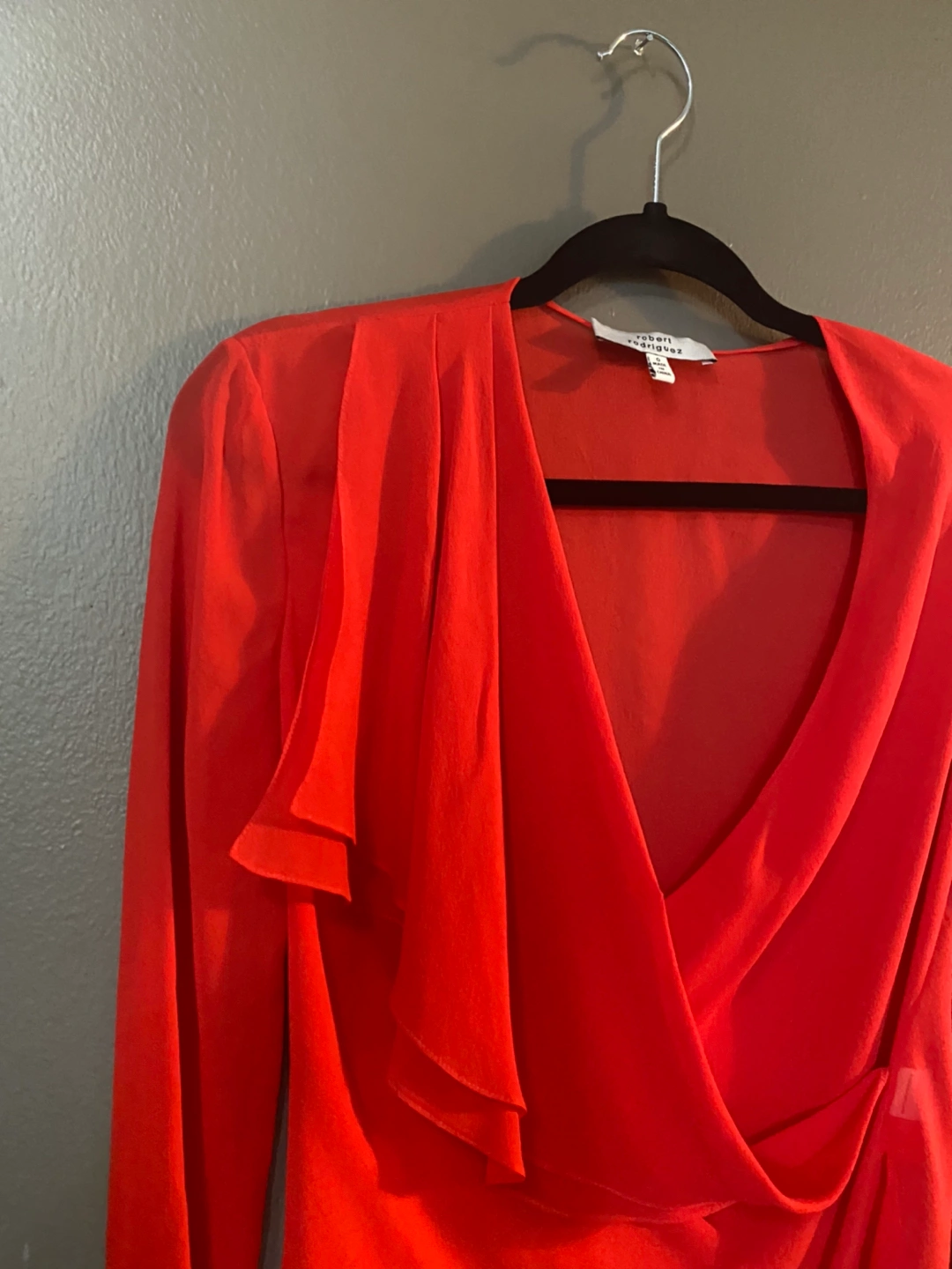 Stunning red Robert Rodriquez Blouse .. sexy and feminine. Size xsmall but fits much bigger