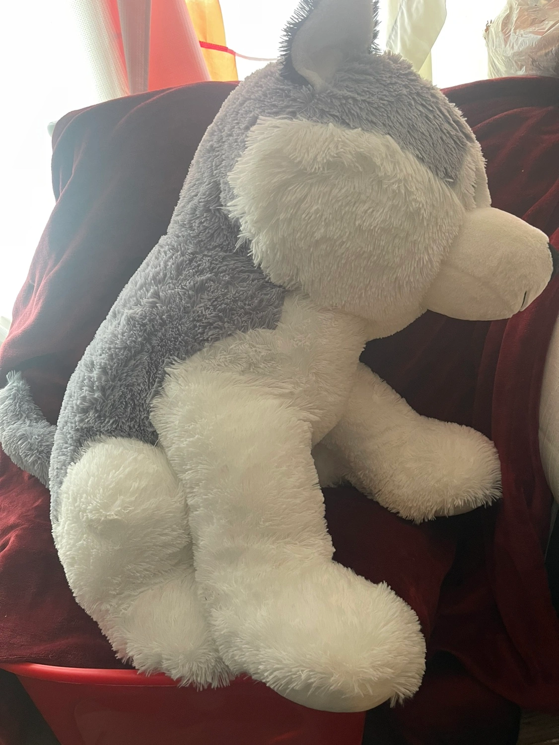 Grey and white plush husky dog. Big and cuddly!
