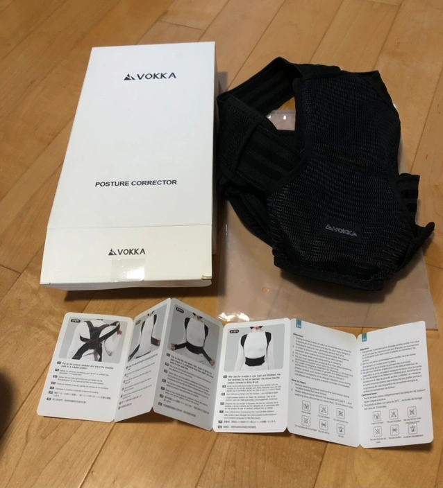 Black posture corrector with adjustable straps. Comes with original packaging and instruction manual. Size: M