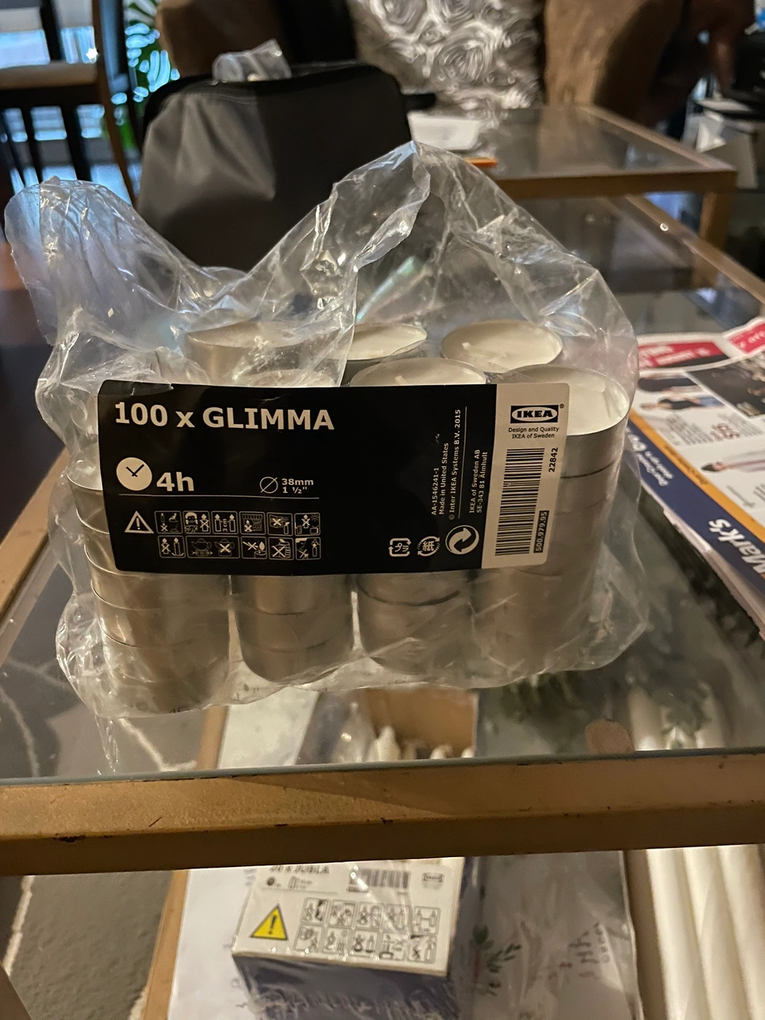 Selling IKEA 47 tealights candles (unused). The candles have a burn time of 4 hours.