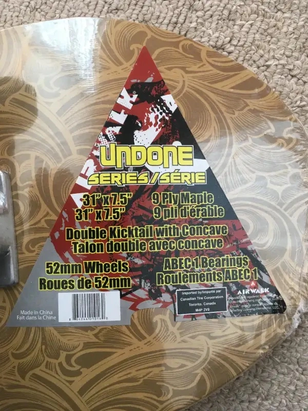 15New Skateboard. Never used. 31"x7.5" Double Kicktail with Concave 52 mm Wheels ABEC 1 Bearings