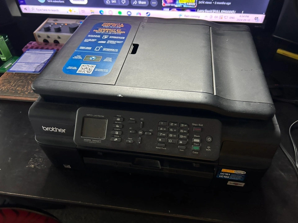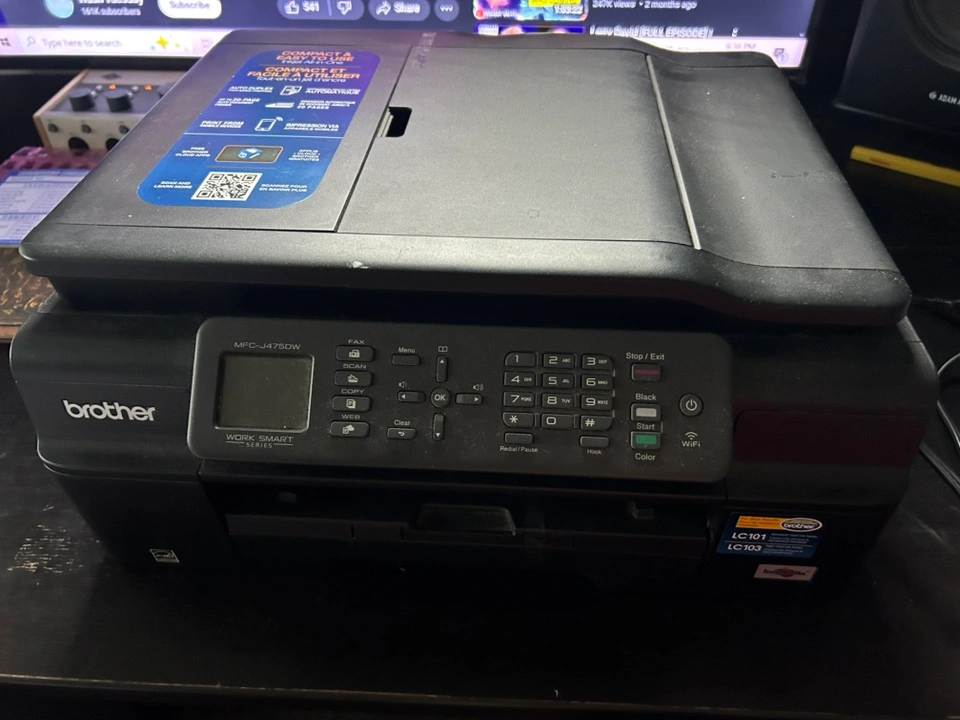 This is a Brother MFC-J470DW inkjet printer. It is a multi-function printer and features printing, scanning, copying, and faxing capabilities. Rarely been used, and has no damage or aesthetic damages.