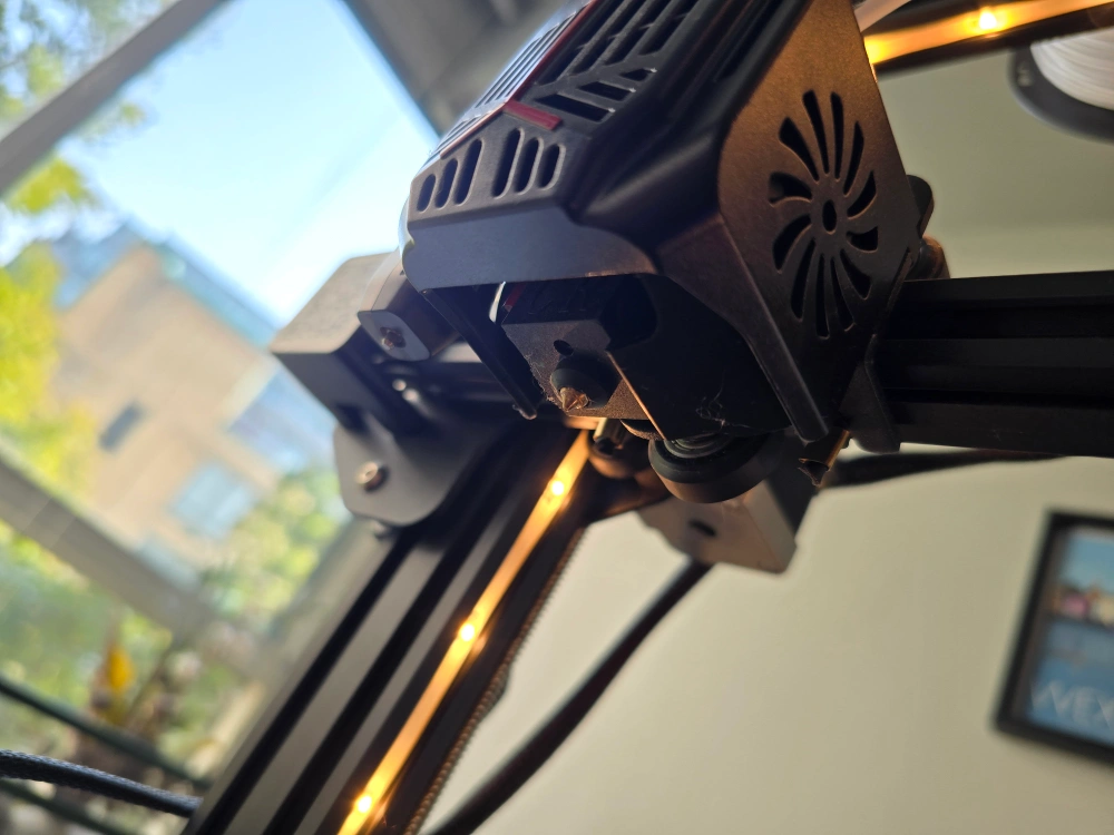 3D printer with heated bed, bed auto-leveling sensor, glass print bed, full metal extruder, quiet stepper motors, power outage protection.