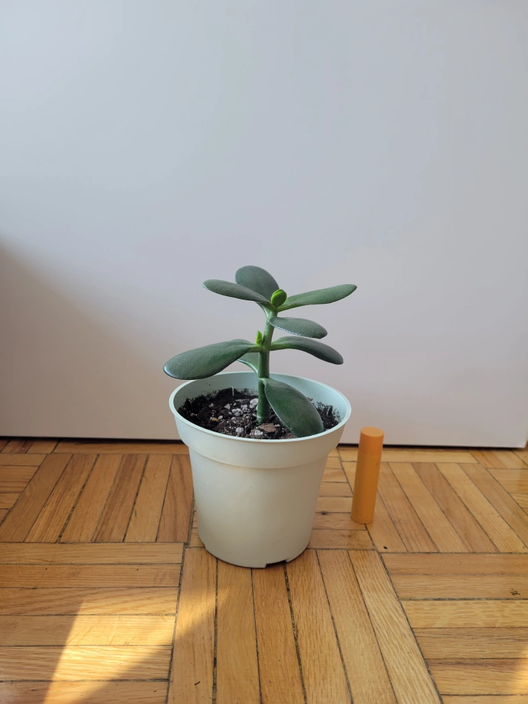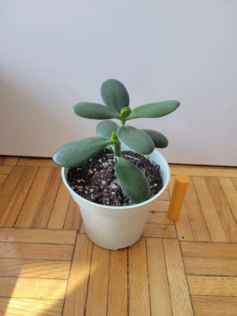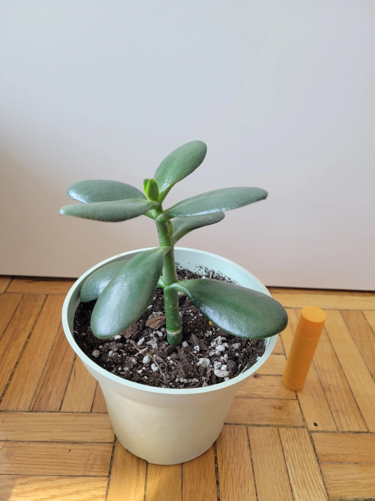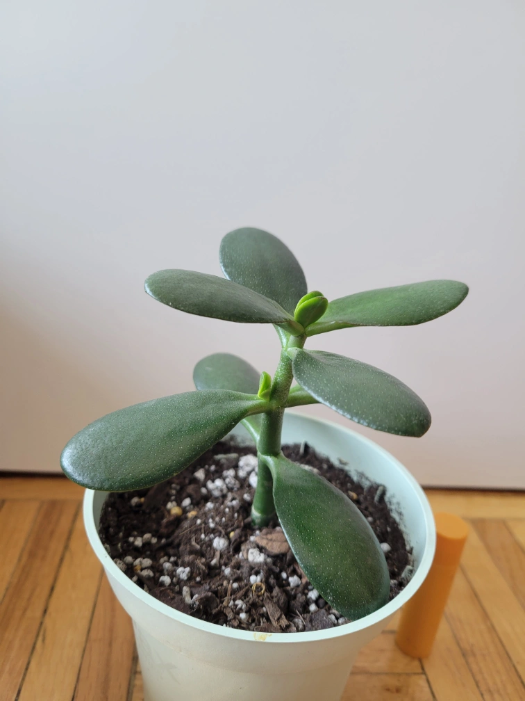 Healthy jade plant. New growth is coming in, and the stem is starting to turn into bark