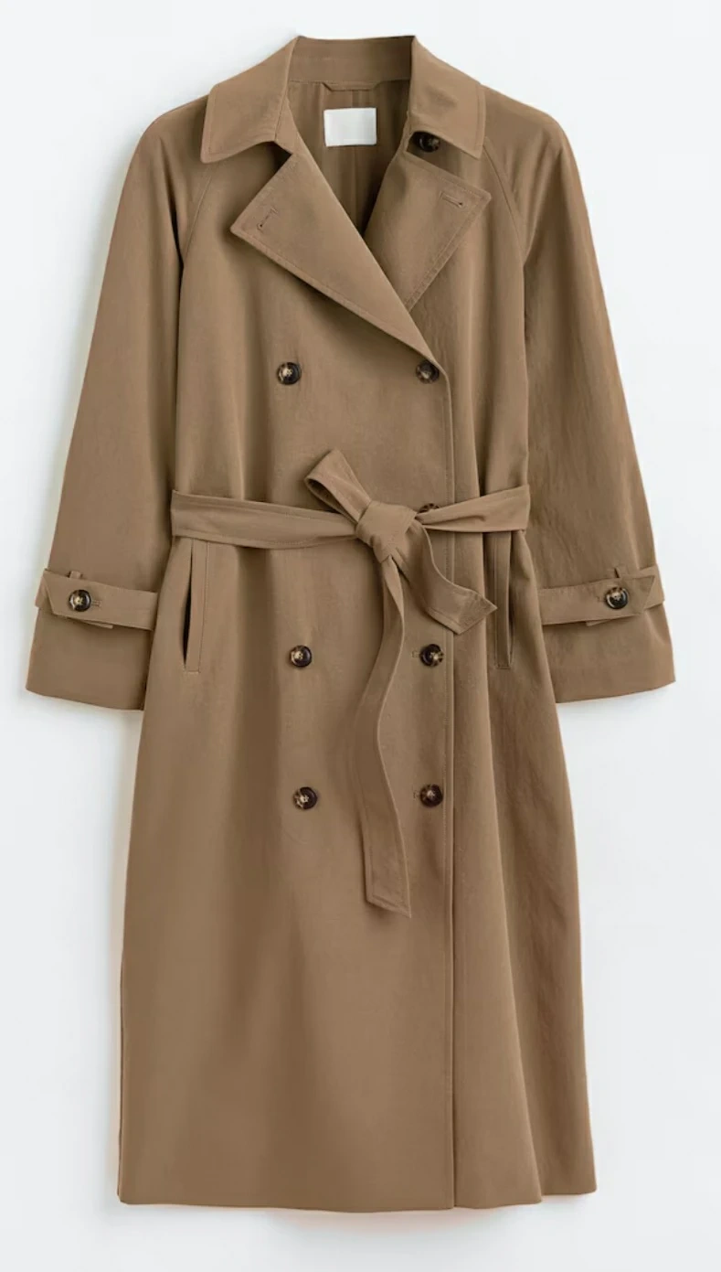 Relaxed-fit, ankle-length, double-breasted trench coat in woven fabric - from H&M size M