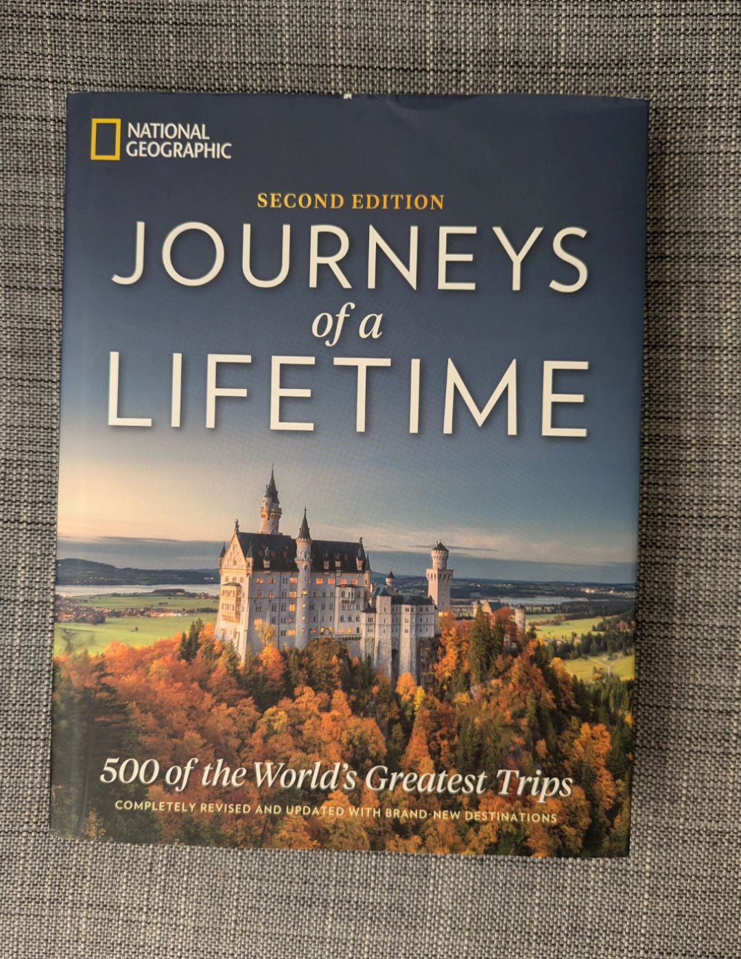 This book features 500 of the world's greatest trips. It includes information on destinations, travel tips and must-see attractions. Large book with lots of photos, which was great as a coffee table book. Some wear to cover as shown in photos.