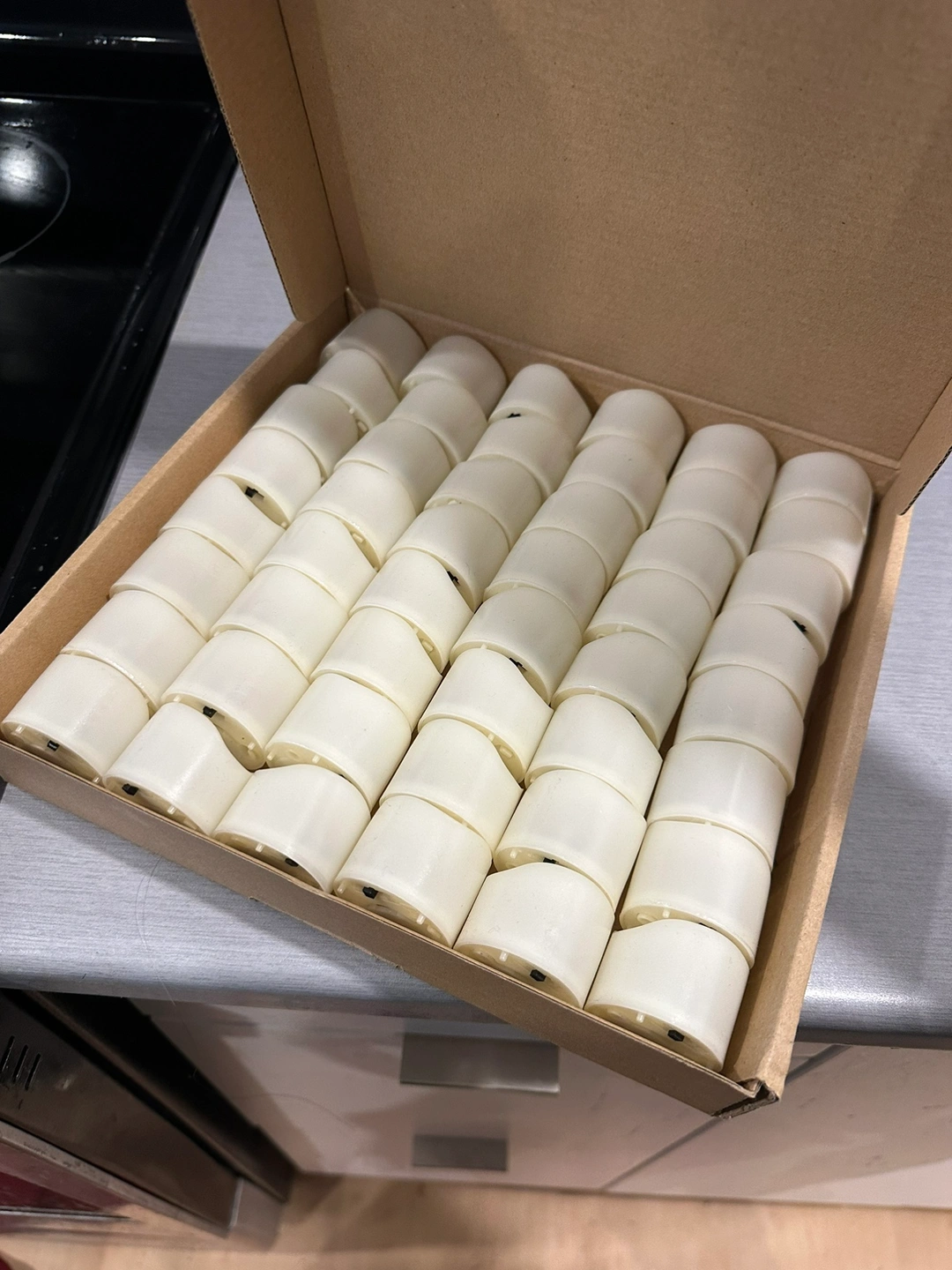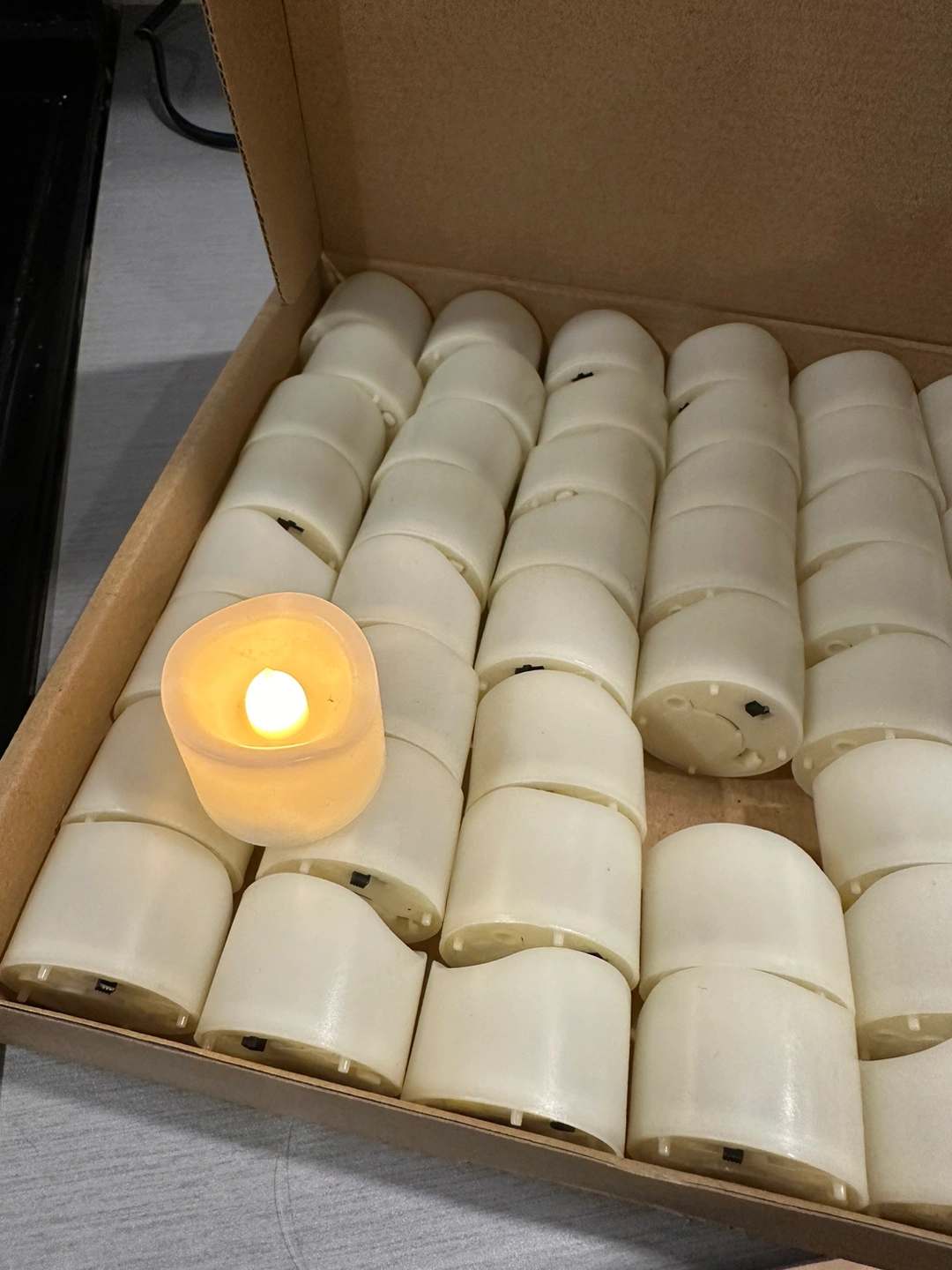 A box of battery operated LED candles. They are white and come in a cardboard box. Batteries included.