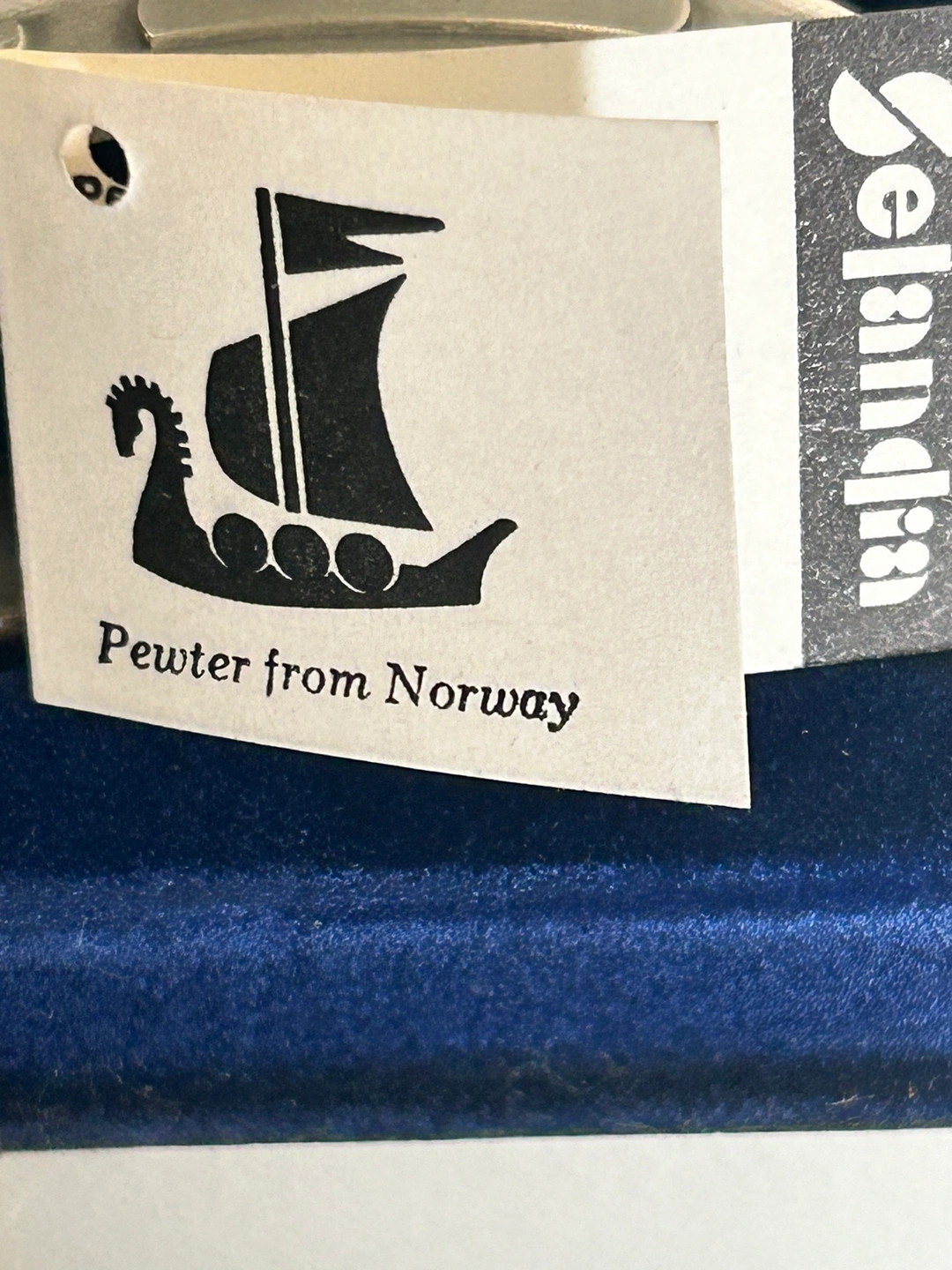 42Set of four Selandia pewter napkin rings with a Viking ship design and wine jug. They come in the original box.