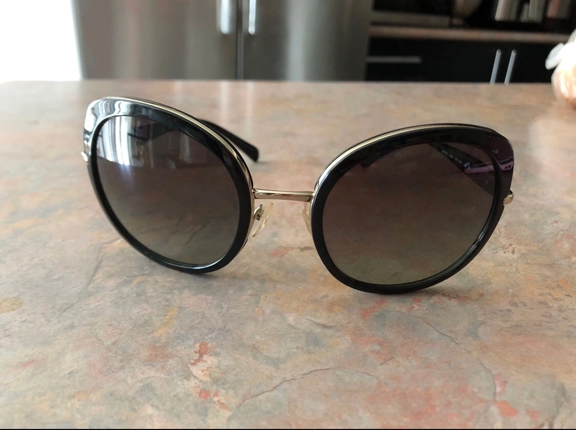 Authentic Women’s Black Prada sunglasses with gold accents.