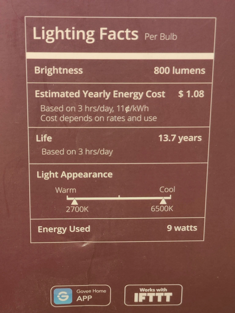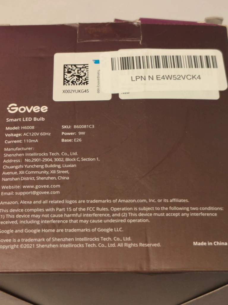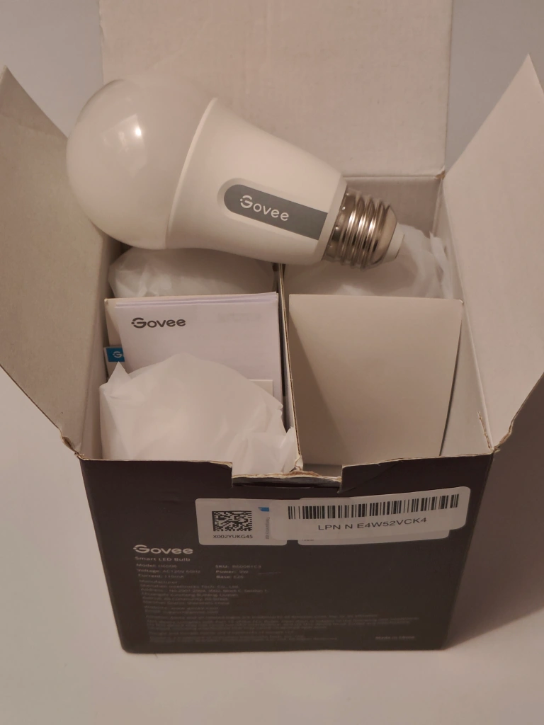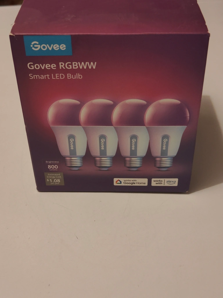 A pack of brand new 4 Govee Smart LED bulbs. These bulbs are compatible with Alexa, Google Home, and IFTTT.