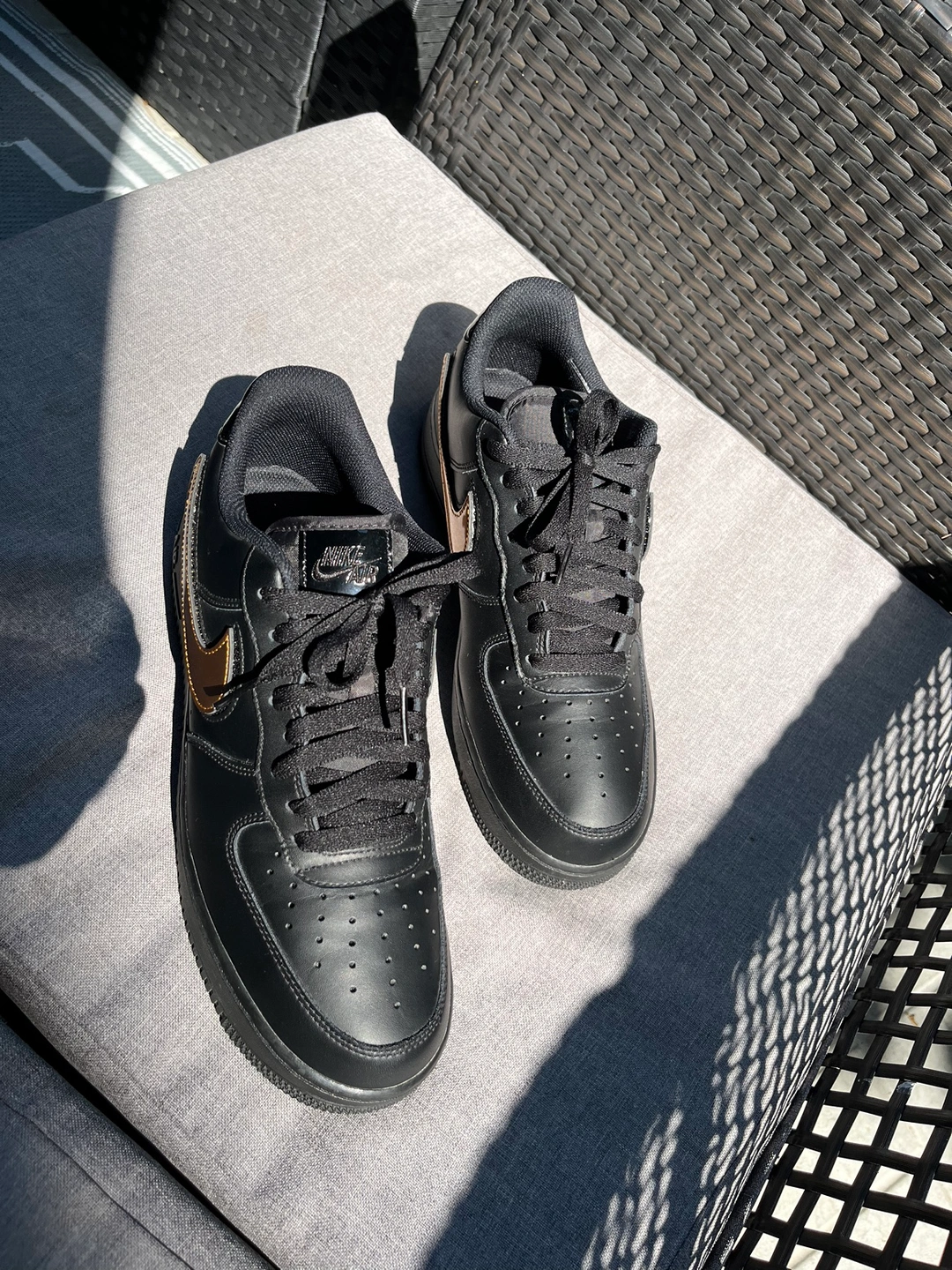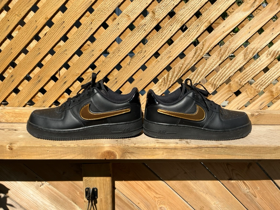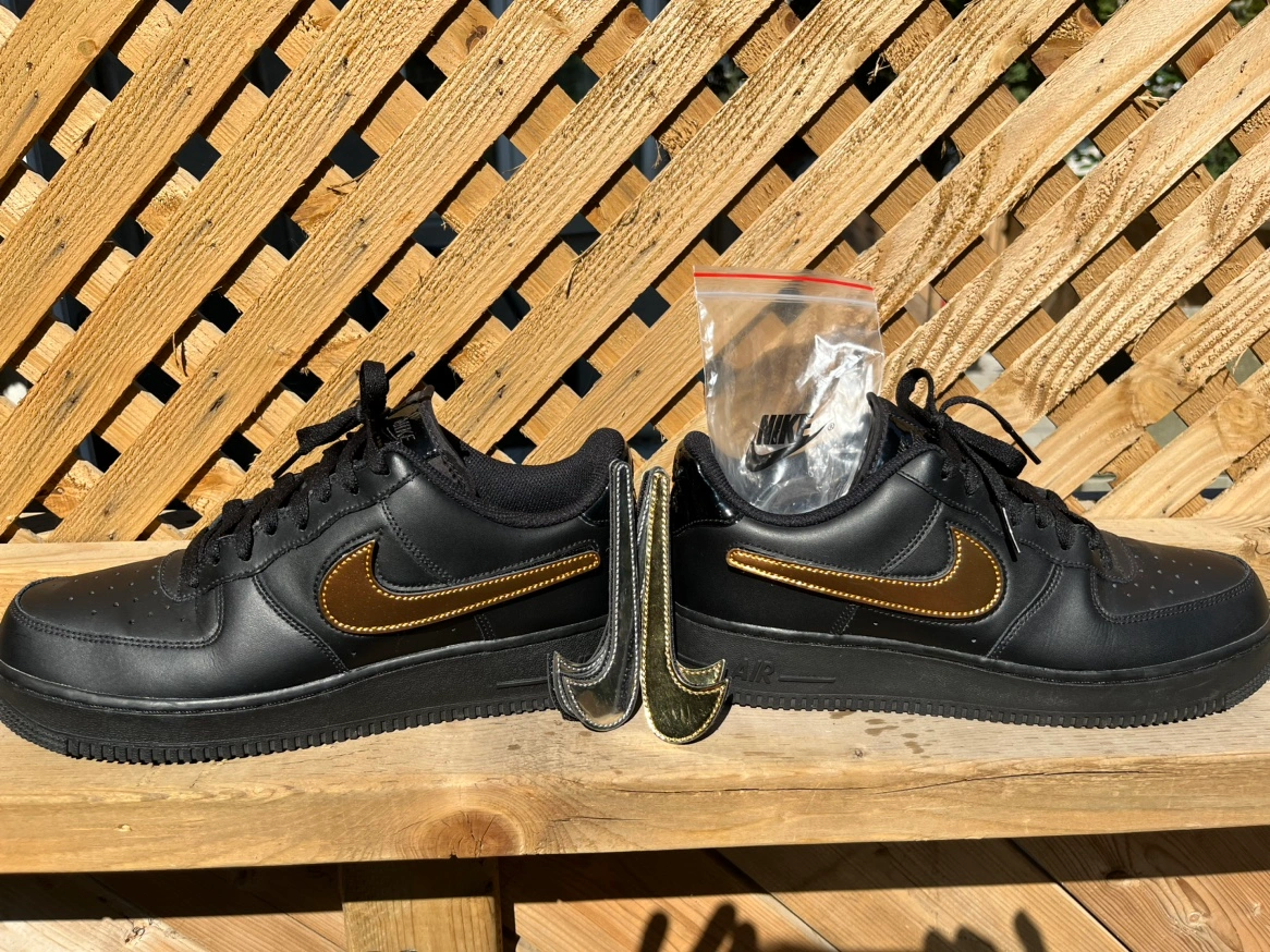 222Air Force 1Low ‘Removable Swoosh’ MENS SZ 10 Launched July 2019 Worn once on set Interchangeable Swoosh - Gold, Silver & Bronze. Old school air sole cushioning PICK UP BATHURST & LAKESHORE
