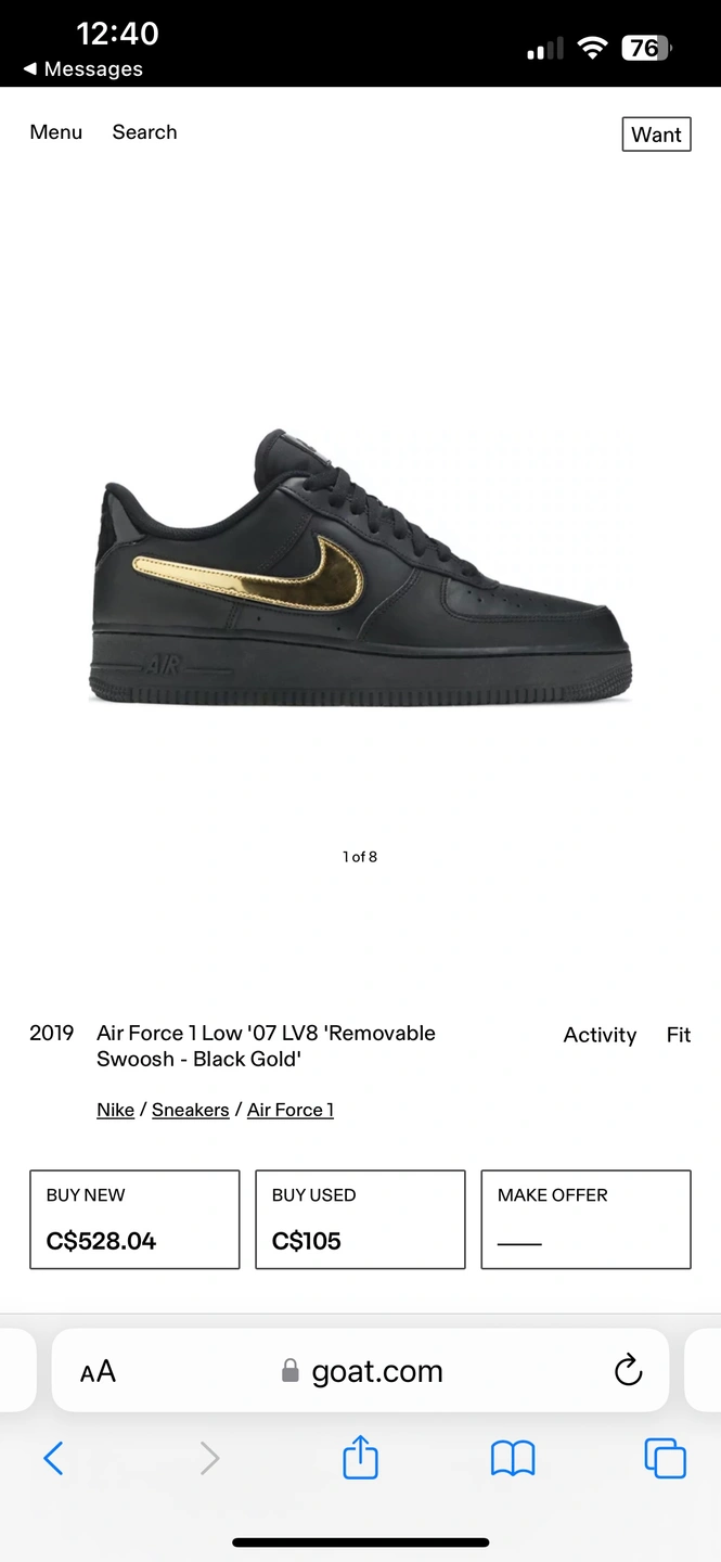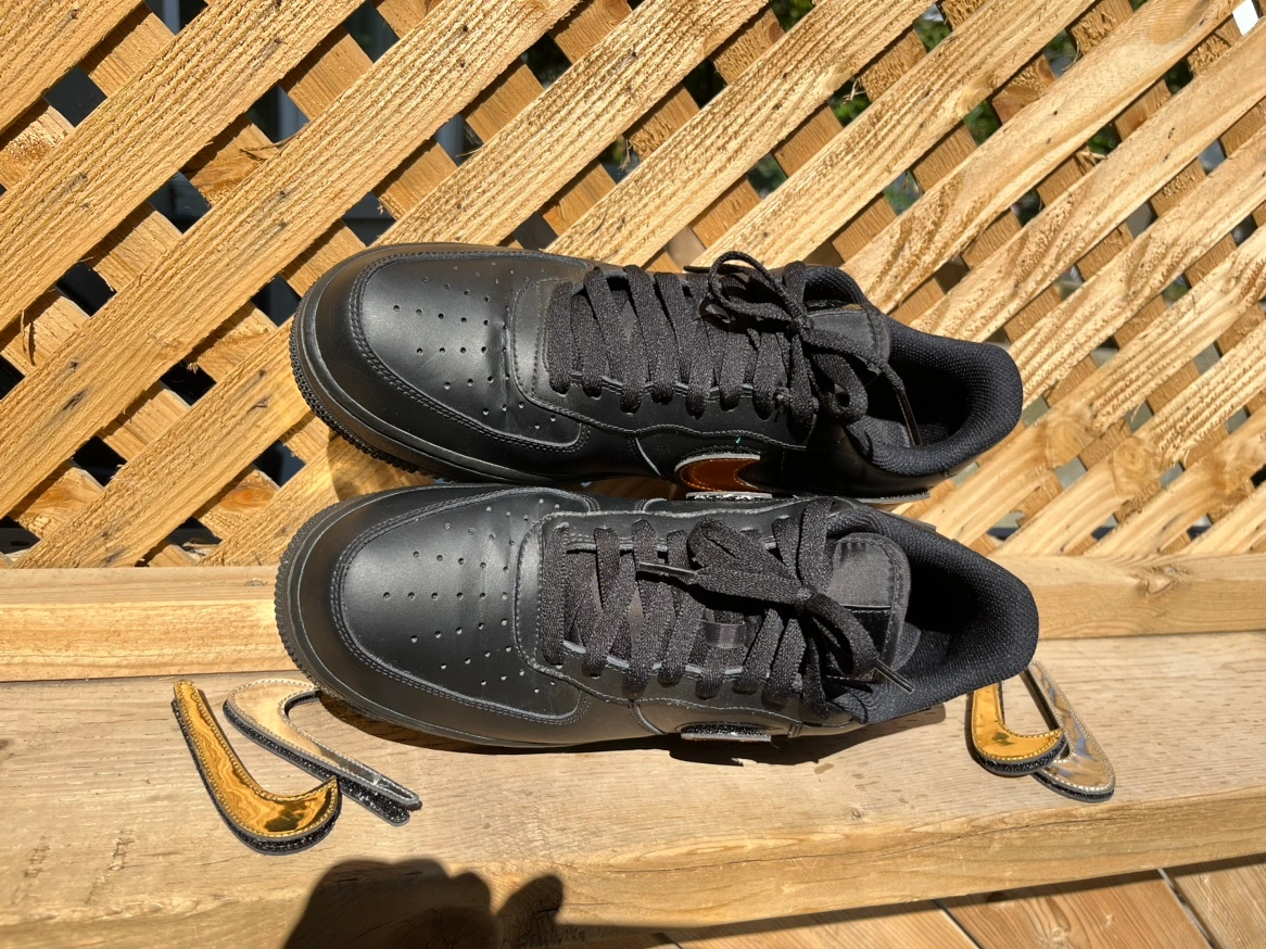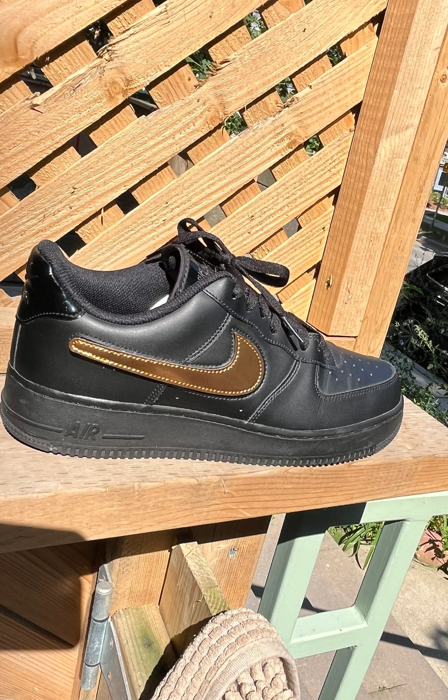 222Air Force 1Low ‘Removable Swoosh’ MENS SZ 10 Launched July 2019 Worn once on set Interchangeable Swoosh - Gold, Silver & Bronze. Old school air sole cushioning PICK UP BATHURST & LAKESHORE
