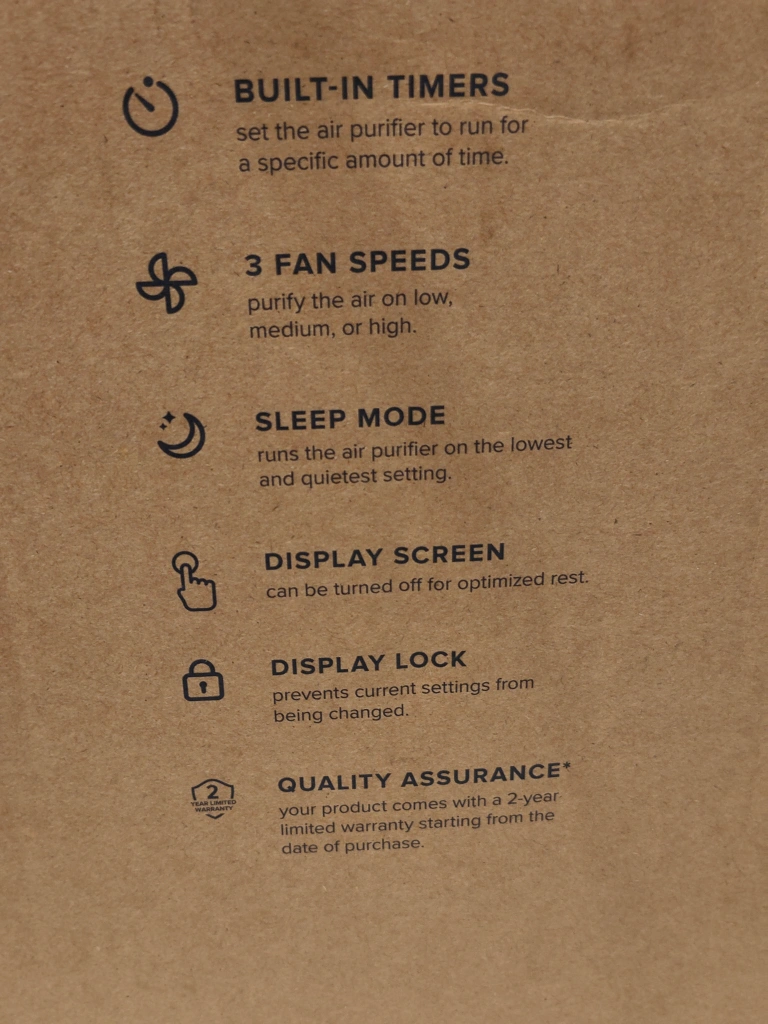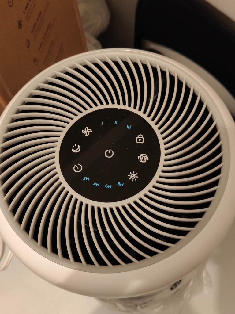 White air purifier. New in box. Never been used. Comes with box and original packaging.