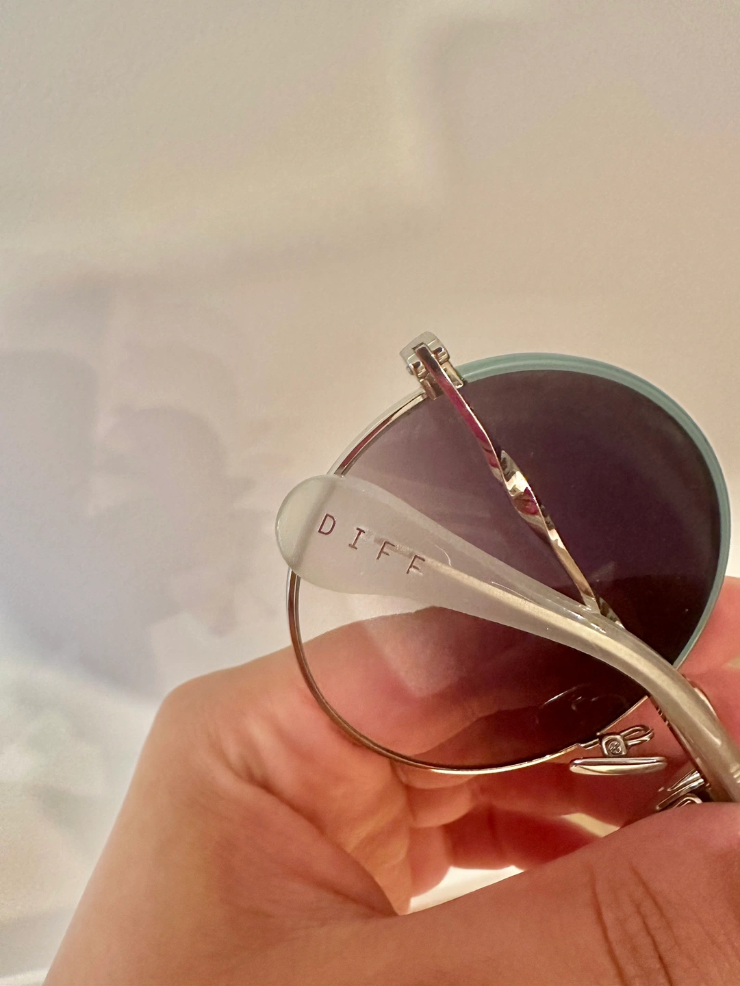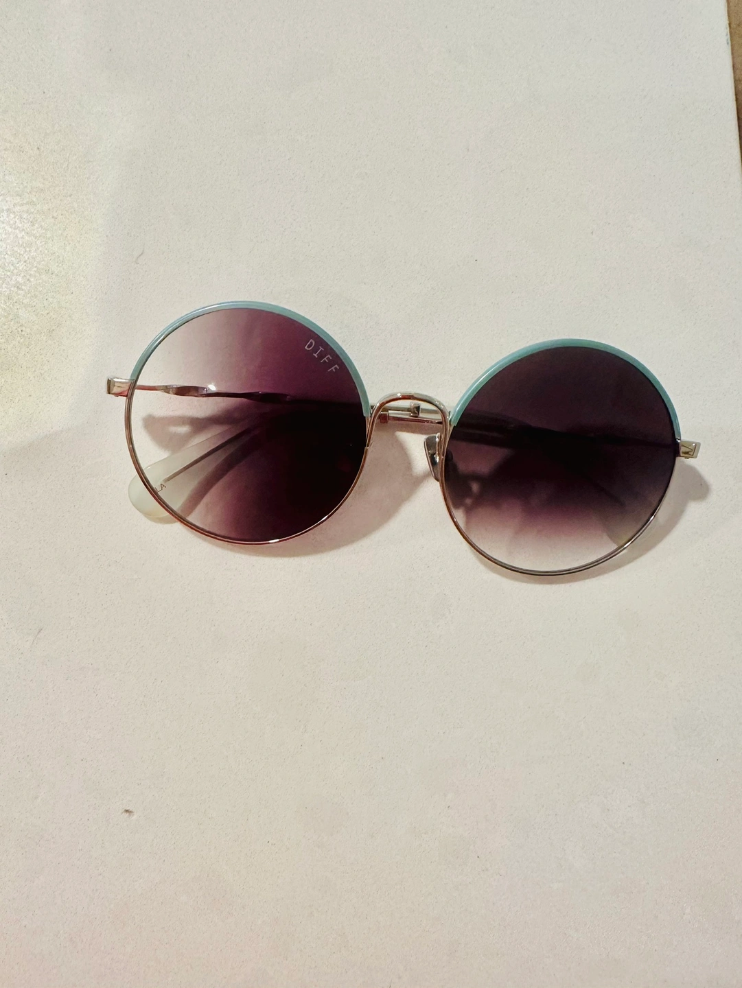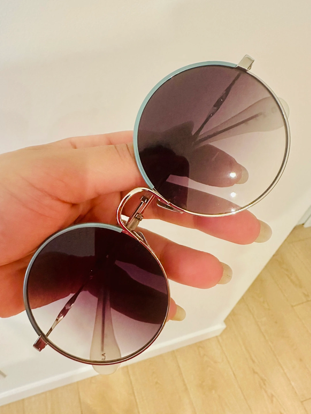 1000+Round sunglasses with a light blue rim and gradient lenses.