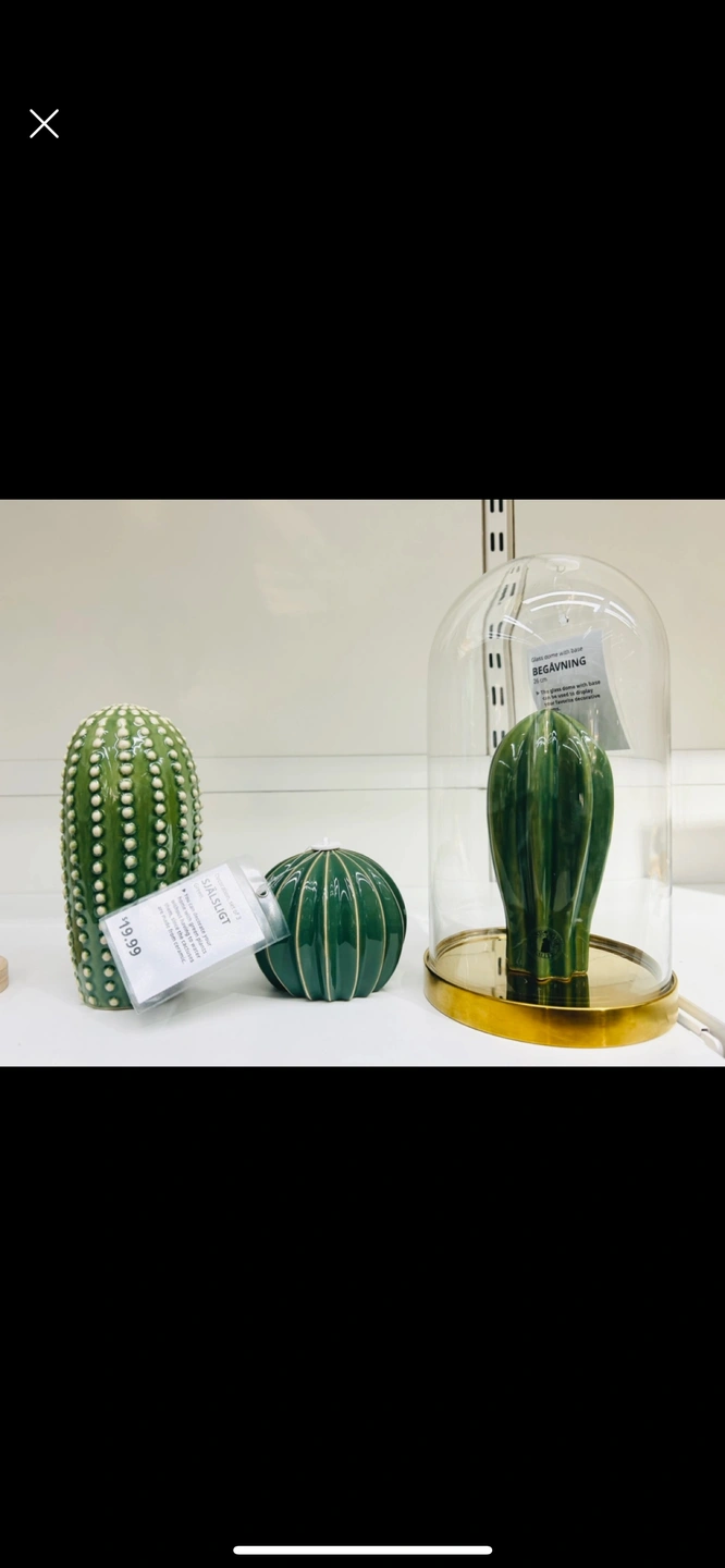 Set of 3 green ceramic cactus figurines. The cacti are all different shapes and sizes. They are all in excellent condition with no chips or cracks.