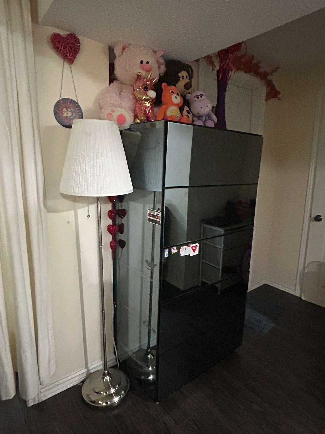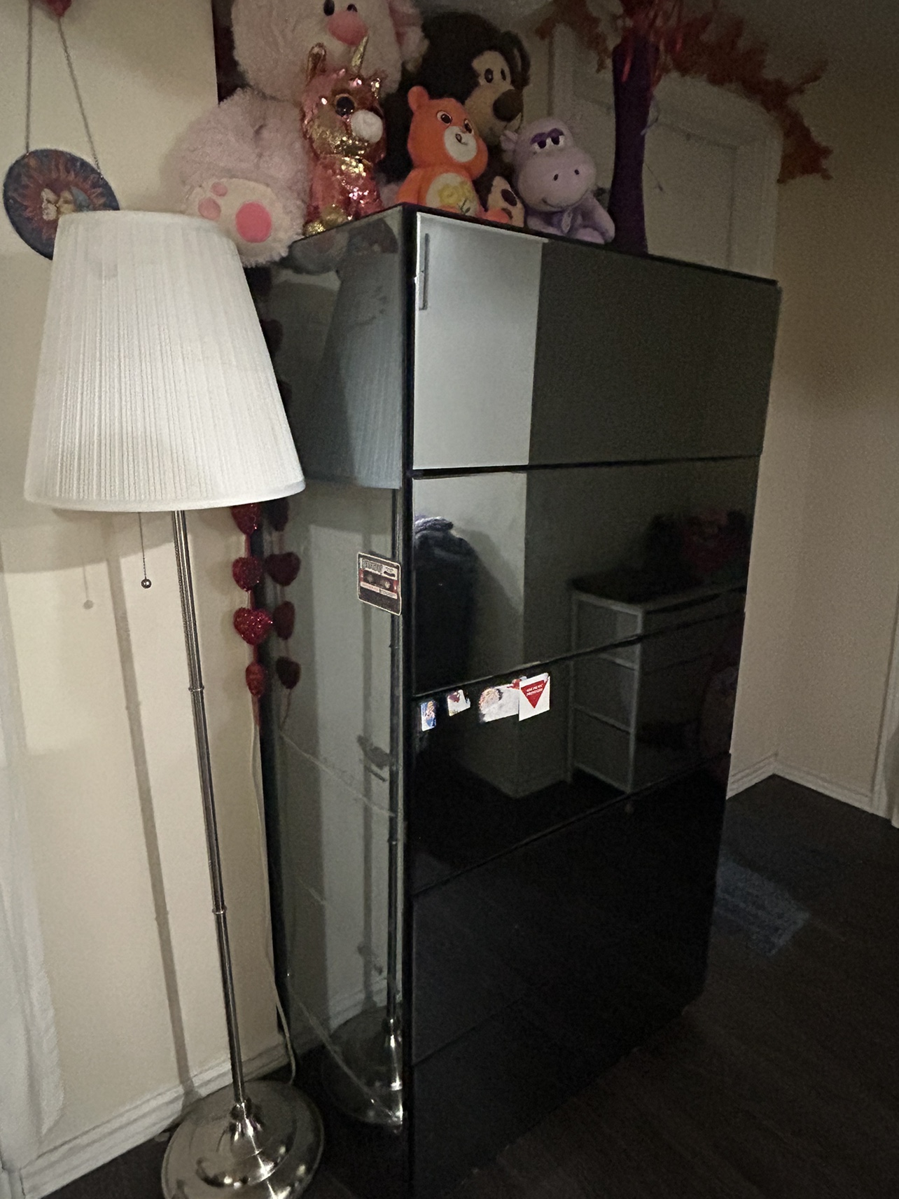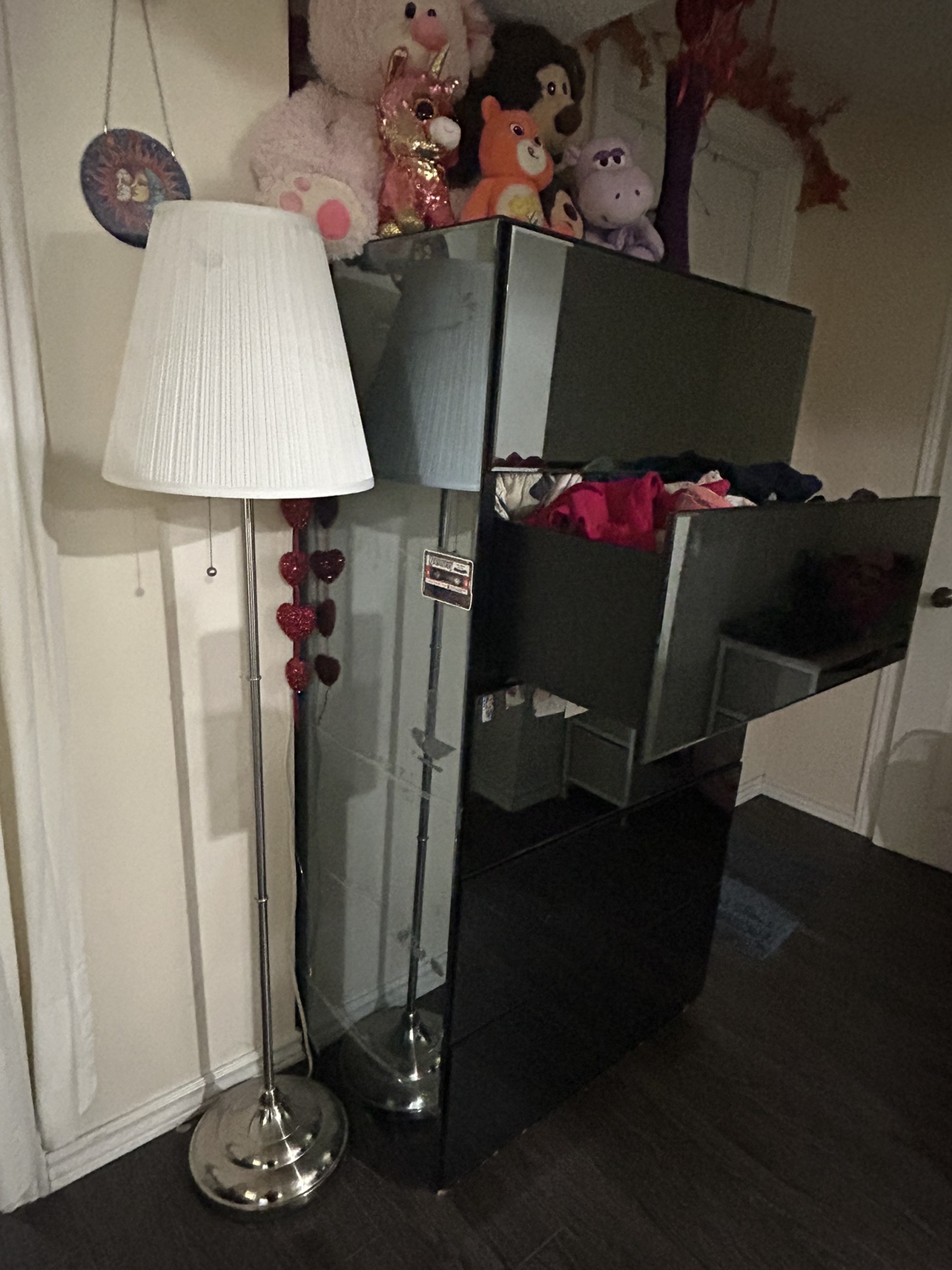 Tall dresser with four drawers and mirrored fronts.Large Capacity drawer for keeping clothes/ anything .Move out sale price negotiable.