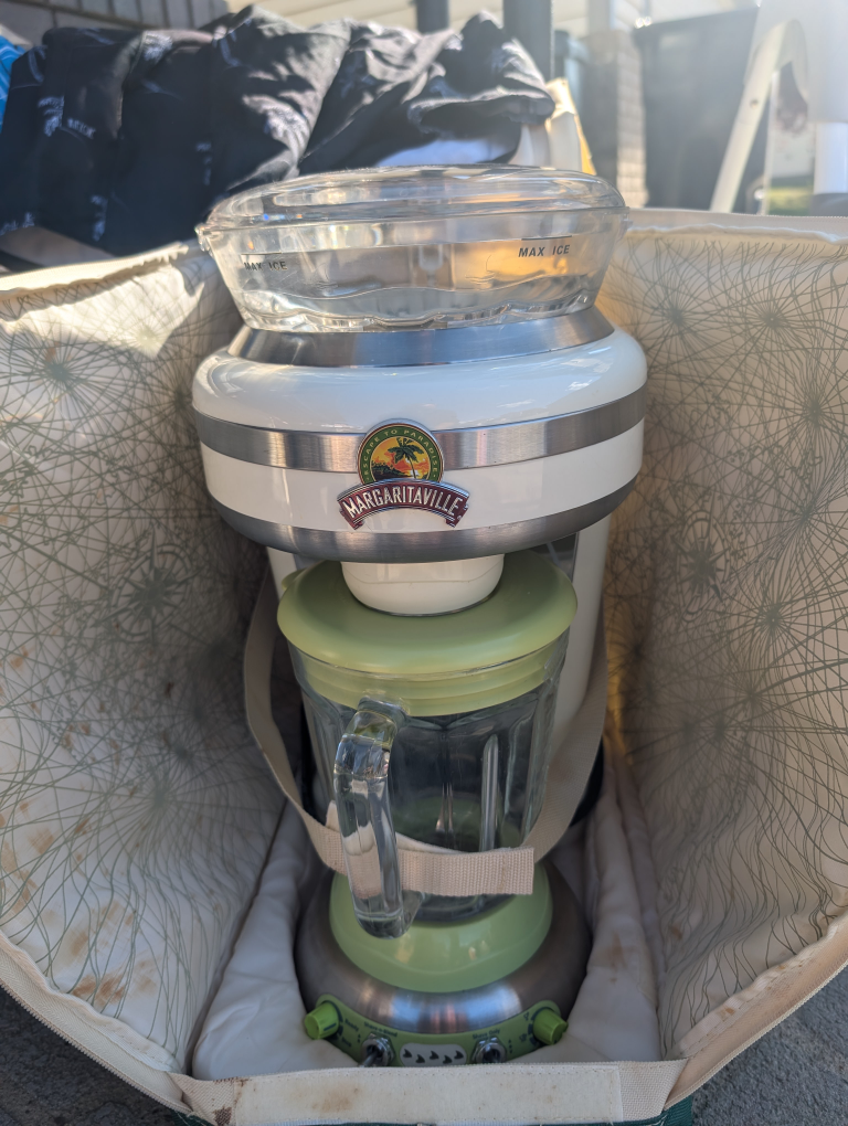 1 / 11 / 1Buy & SellMargaritaville BlenderMargaritaville Blender$25Blender with ice crusher and a green base. Comes in a carrying bag.ConditionGoodWHERE TO MEETCheck LocationView MapSELLERverifiedAjLinkside872 reviews1 chats·0 favorites·14 viewsSEND CHAT TO SELLERHi Aj! I’m interested in your listing.Hi Aj! I’m interested in your listing.Get the Karrot app to chatSign In to chat