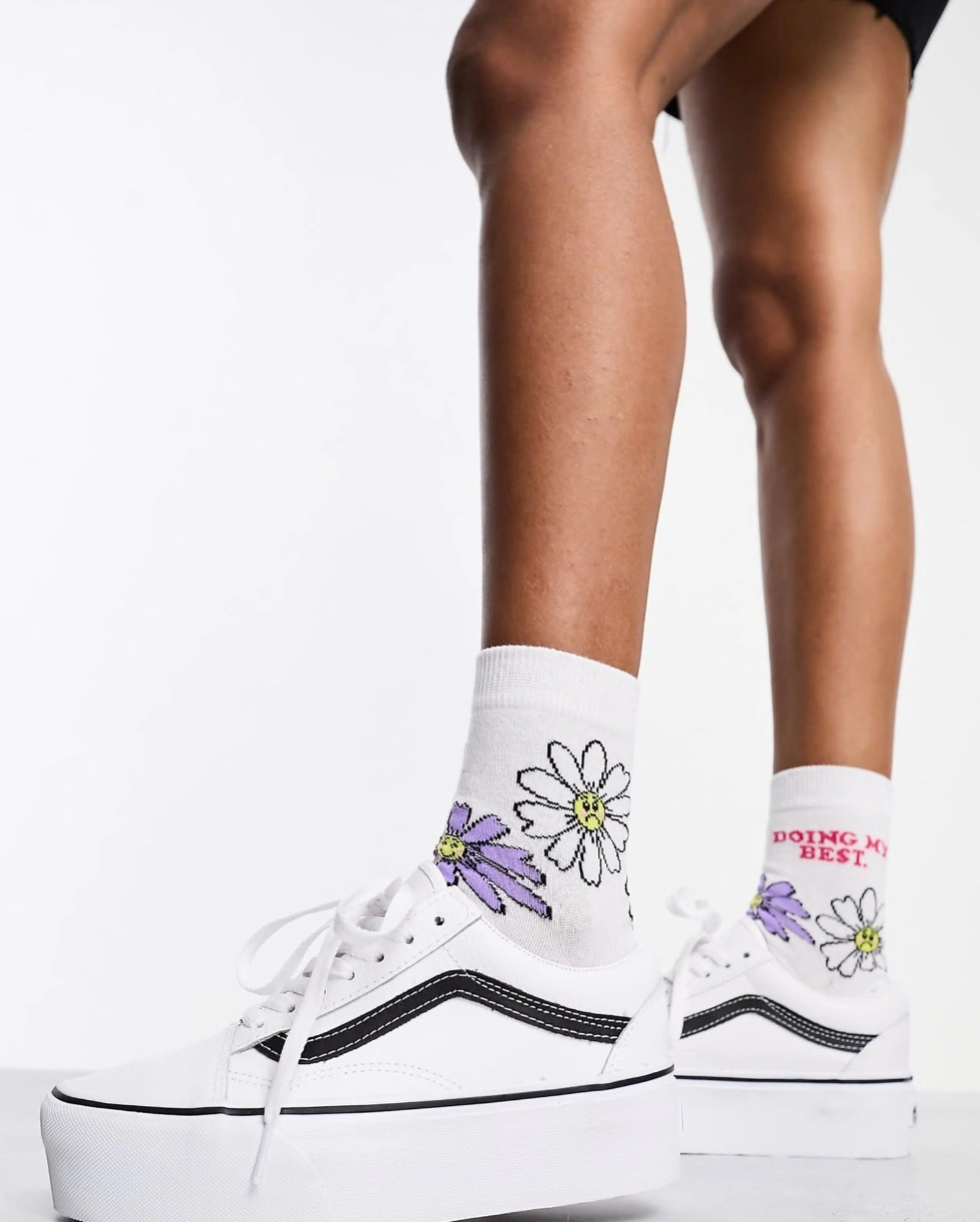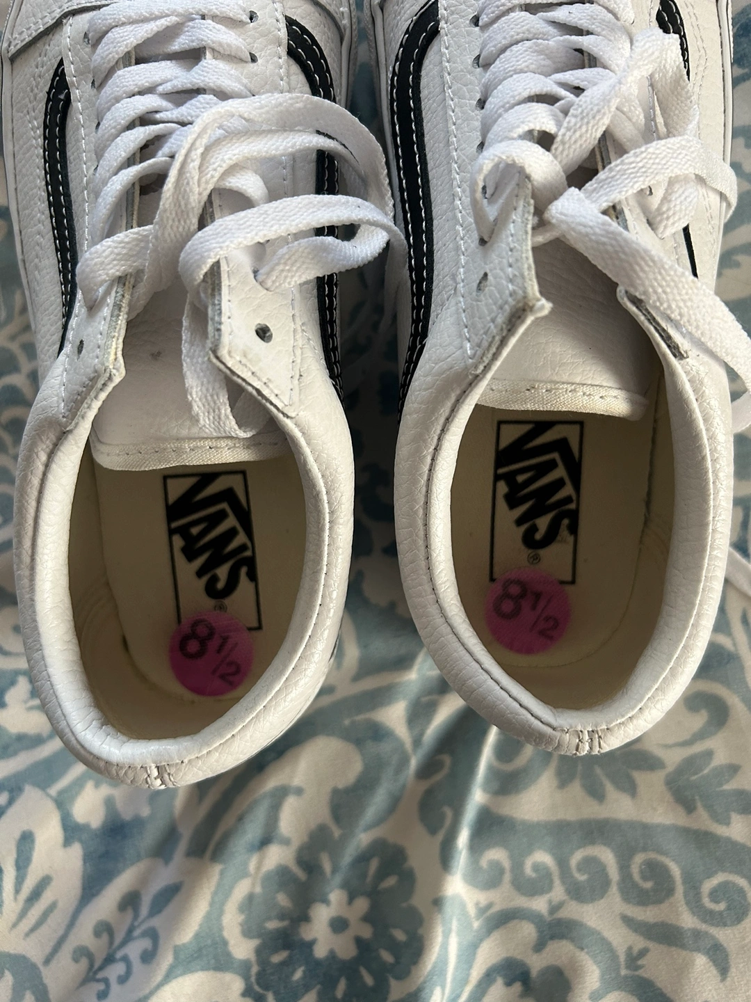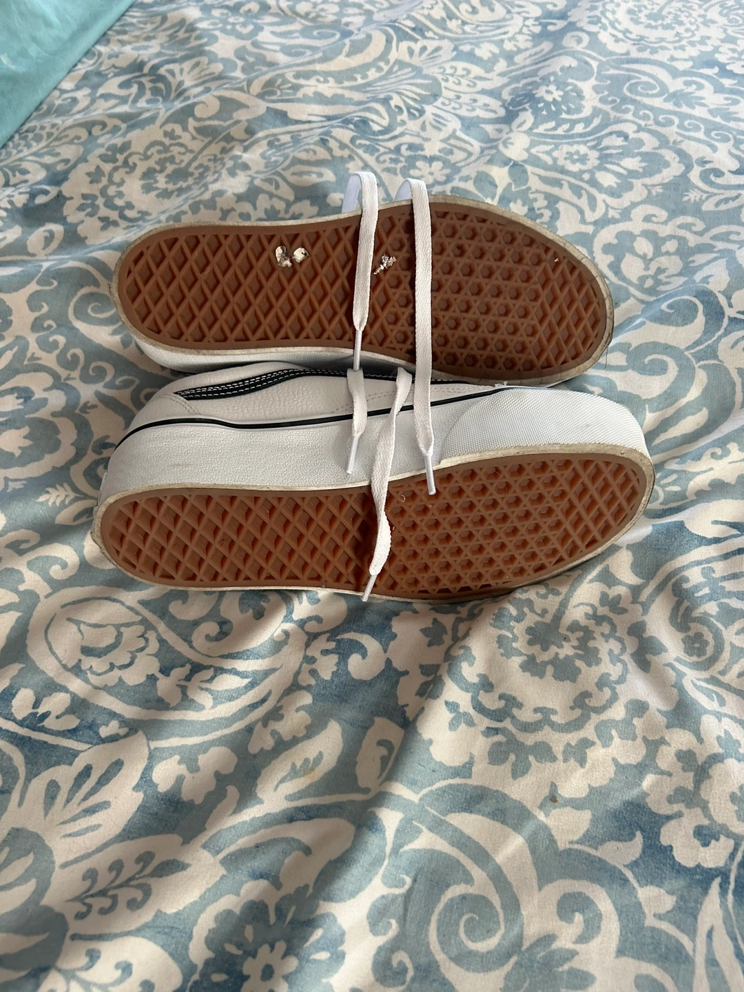 73Worn once size 8.5 Lace-up and head out Low-profile design Lace-up fastening Padded cuff Signature Vans branding Old Skool stripe to sides 'Off The Wall' heel tab High-gloss taping Platform sole Signature waffle tread