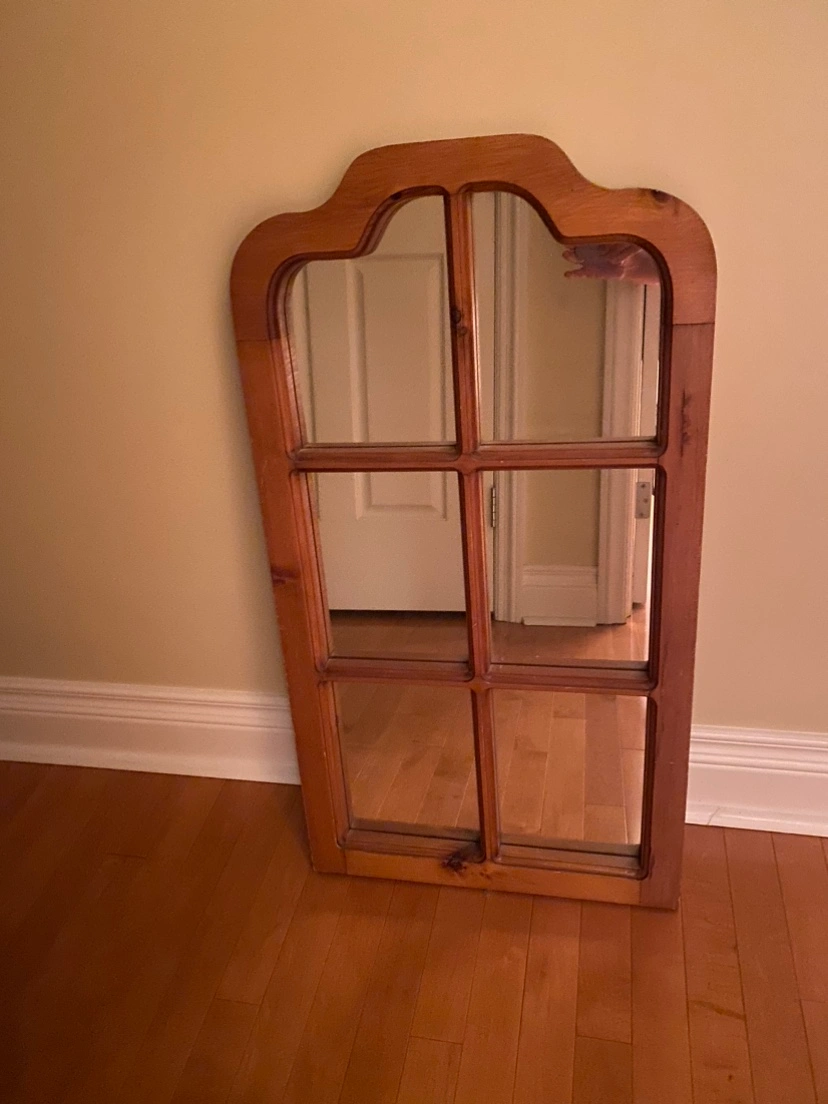 A beautiful wooden mirror with a multi-paned window design. Vintage 1980 with no scratches or nicks to the solid pine frame. From a pet and smoke free home. Pickup only in the St. Lawrence market area of downtown Toronto. Cash only.