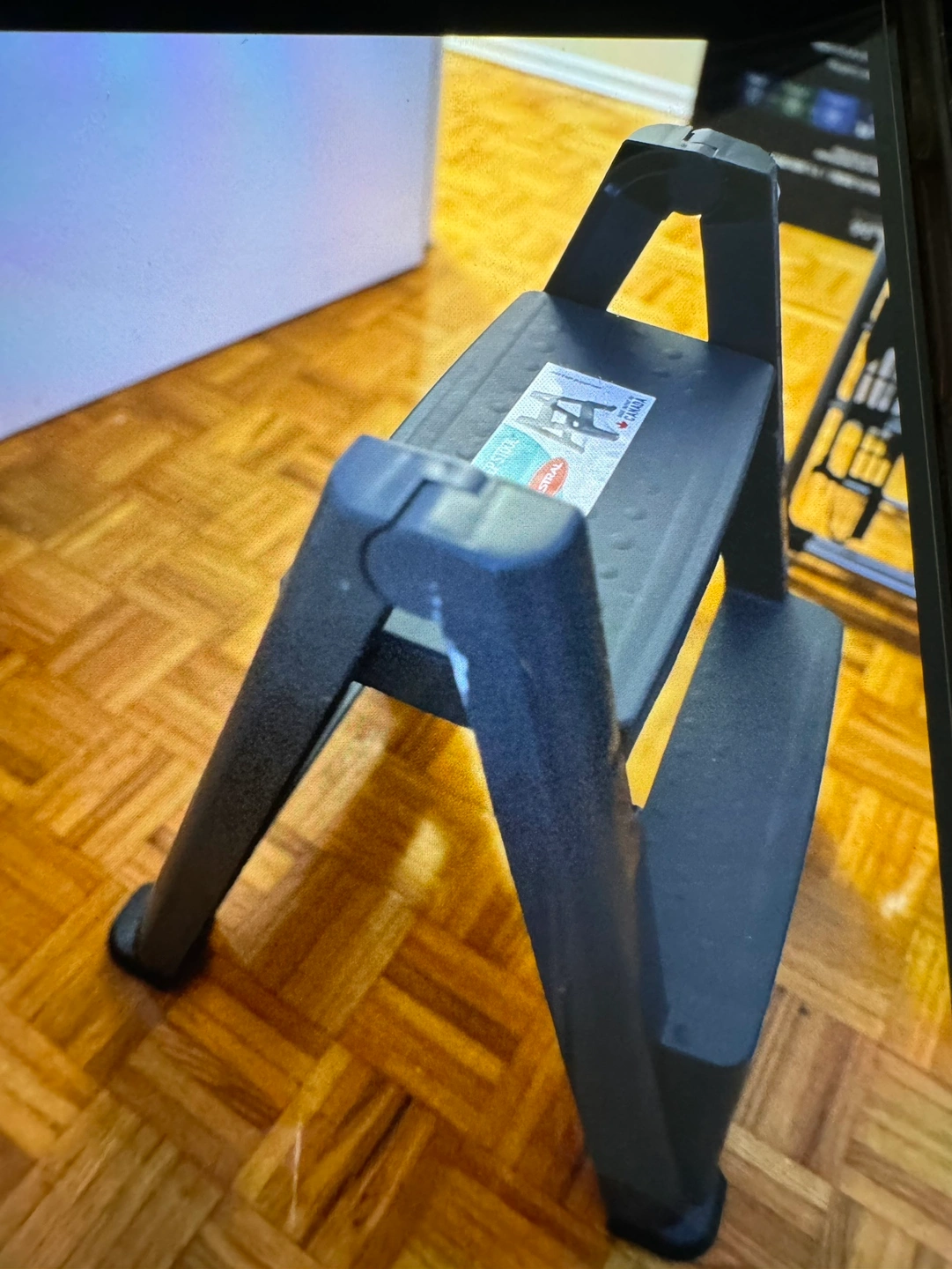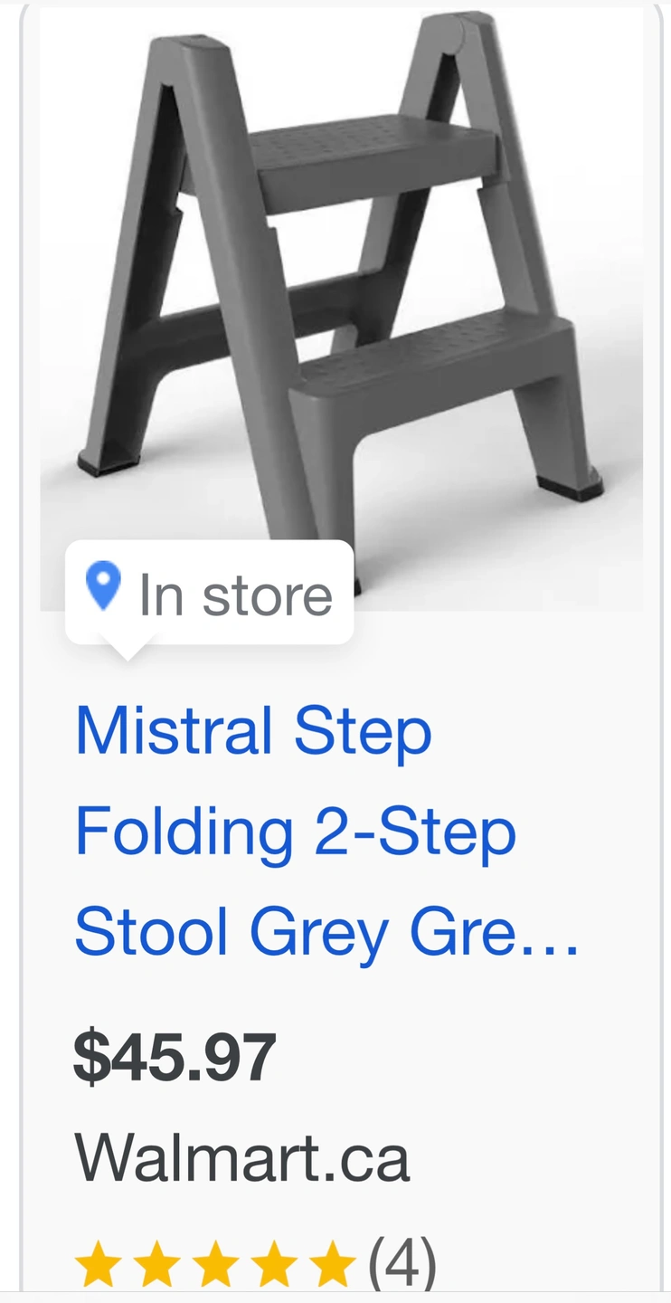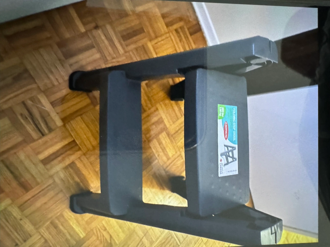 A two-step black plastic step stool. It is foldable. Capacity 300lbs/136KG.The step stool is in good condition. Very convenient and light to carry anywhere in the house. If the picture is up it’s available. Pick up and cash only