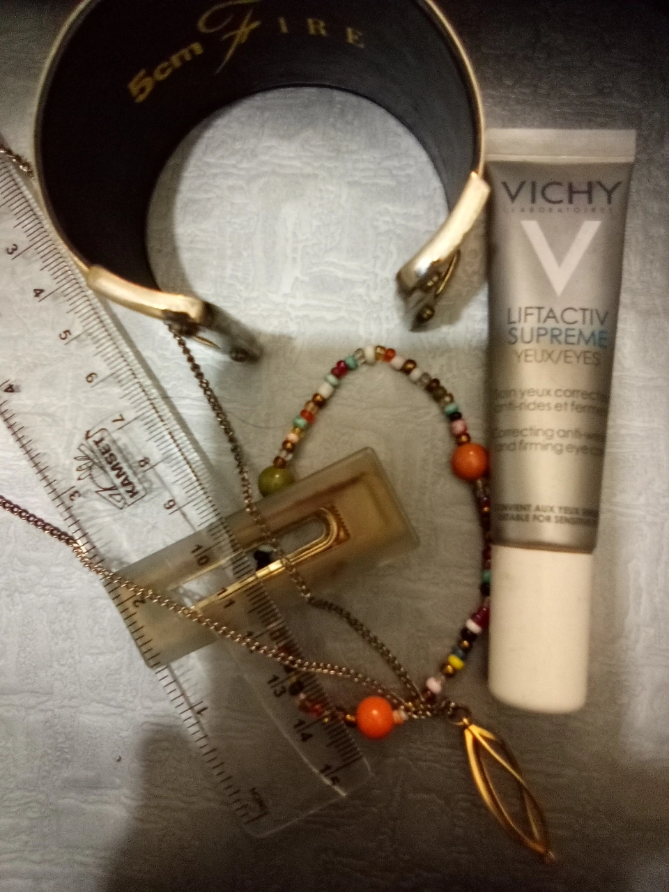 A beautiful 🙂 cuff bracelet and necklace set, perfect for adding a touch of elegance to your outfit. The set includes a gold cuff bracelet and a gold chain necklace with a gold pendant. ruler n lift active supreme eyes.also a barret .only available for pickup 🙂