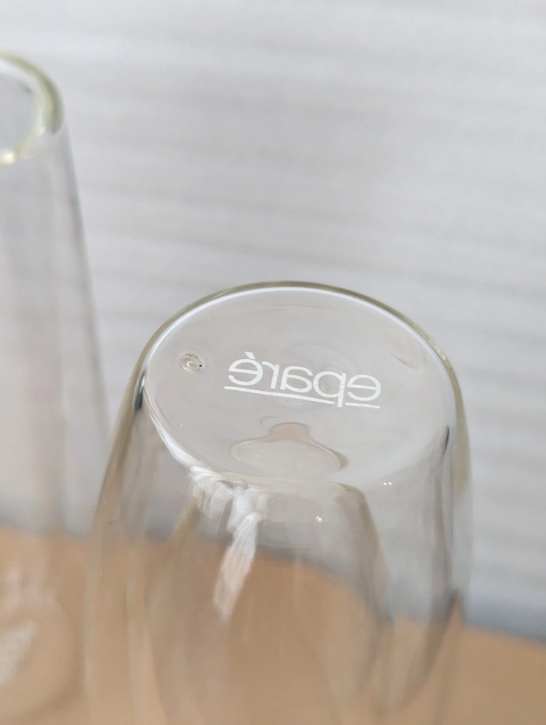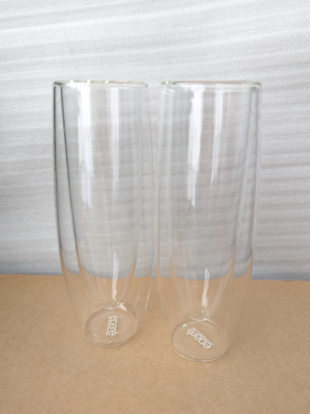 Eparé champagne flutes in borosilicate glass. Double wall design keeps the liquid cold for longer and resists condensation.