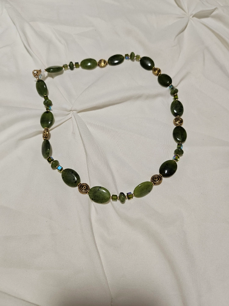 Black and Green Beaded Necklaces. jade and onix chocker.