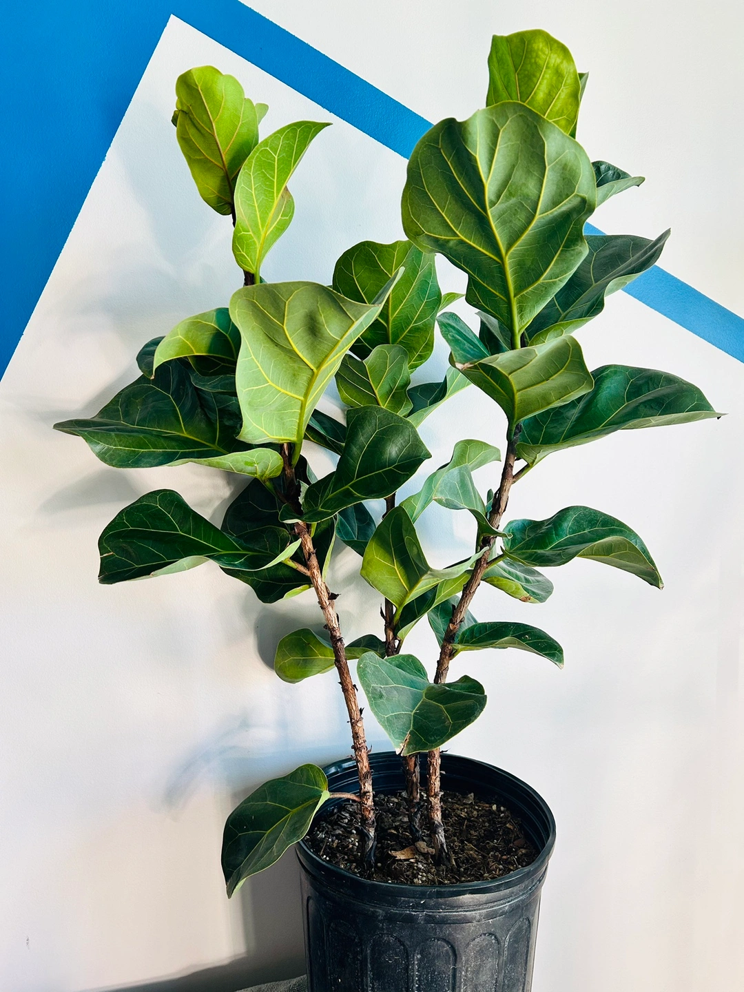 This is a Fiddle Leaf Fig plant, in a black pot.