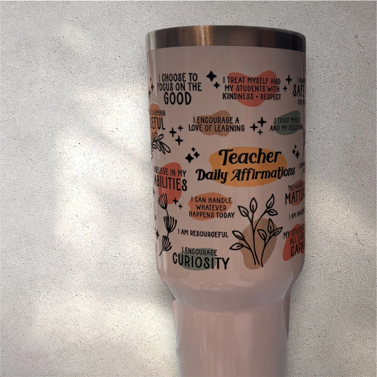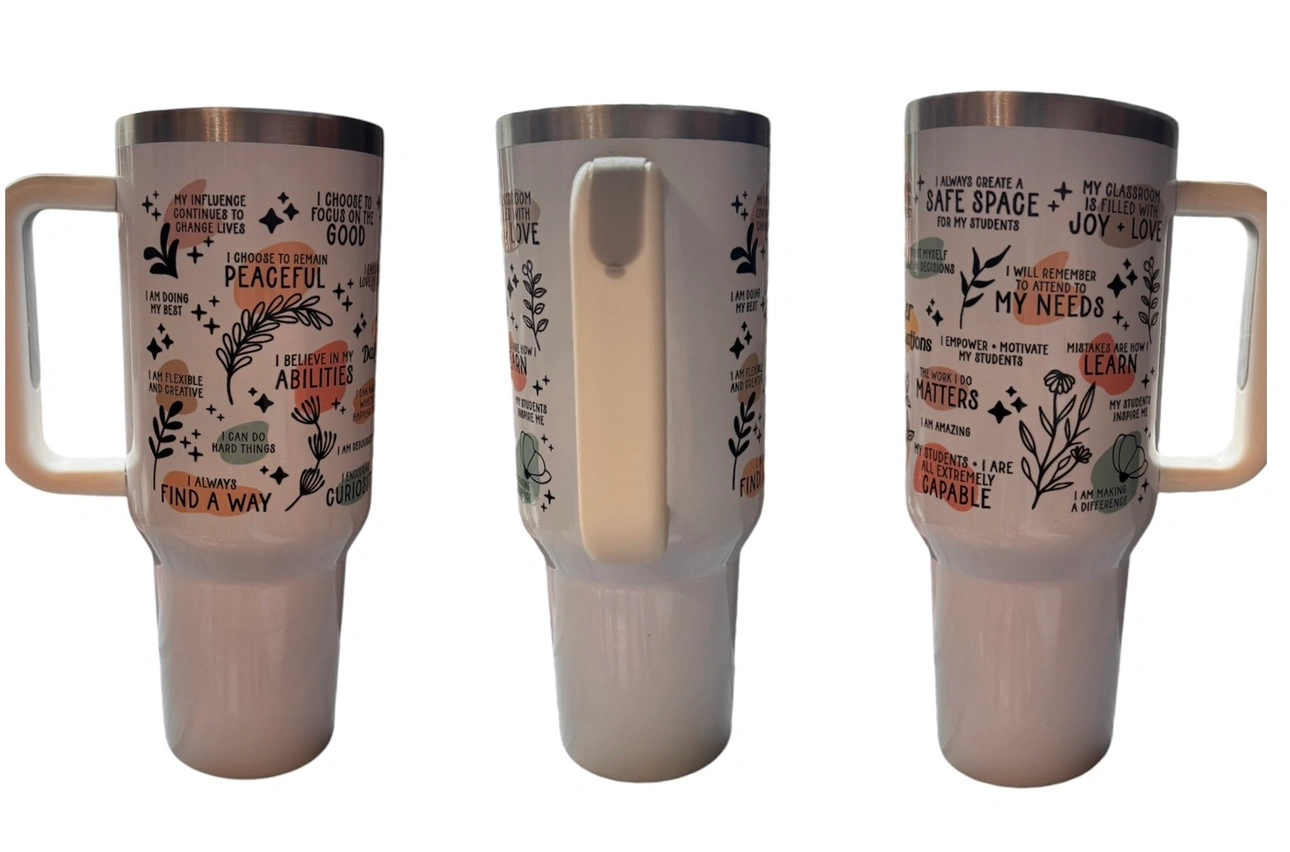 It fits in a cup holder with a 7.5cm base. The tumbler holds 40oz of hot or cold liquid.