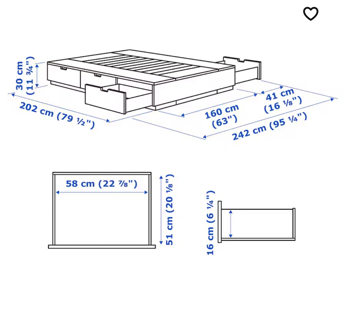 Drawer depth (inside): 51 cm (20 1/8 ")