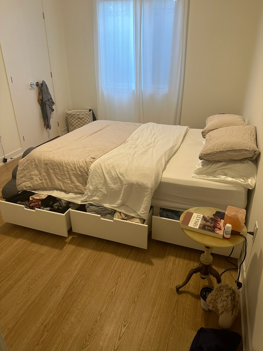 Ample storage space is hidden neatly under the bed in 6 large drawers. Perfect for storing duvets, pillows and bed linen.