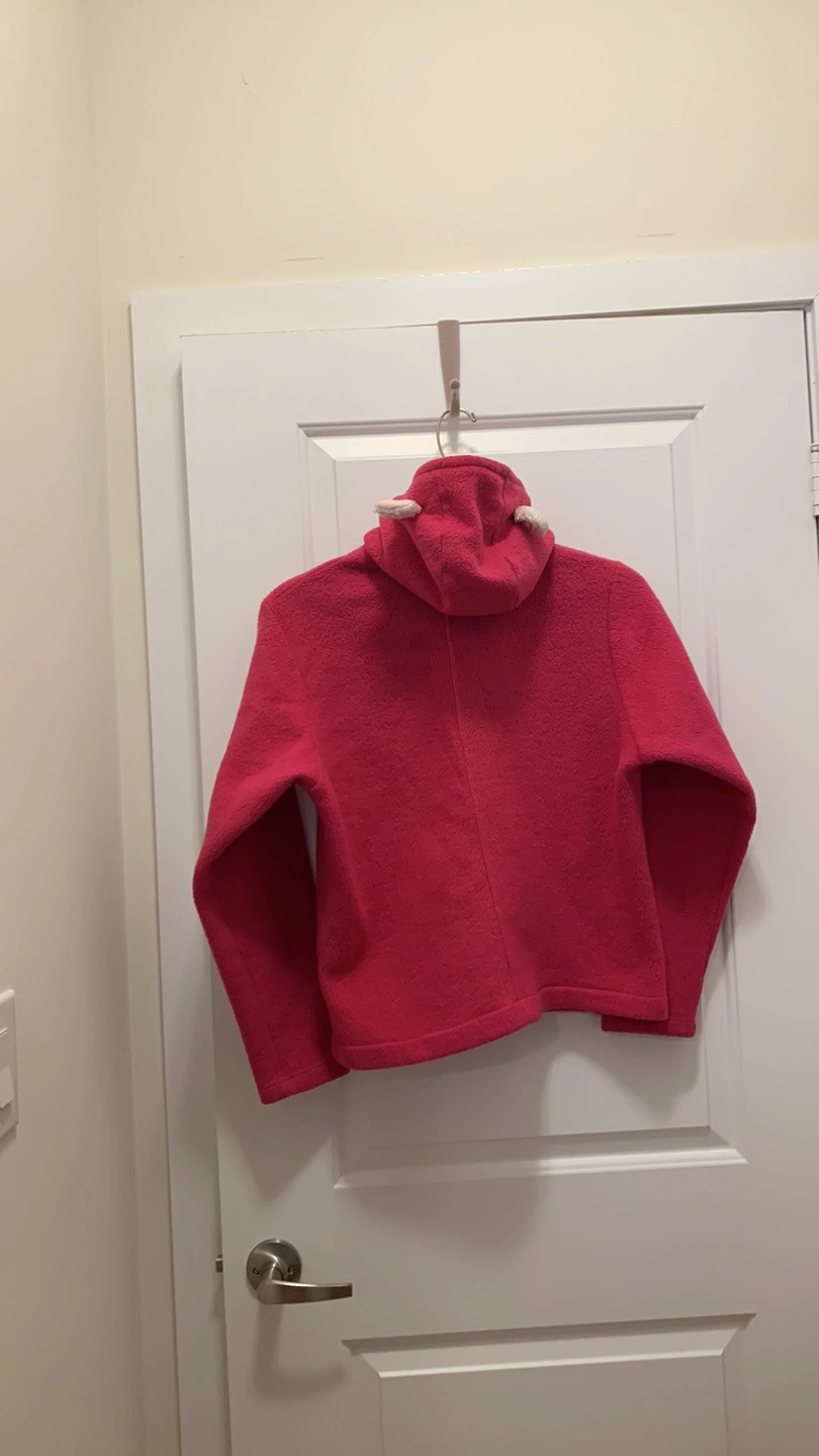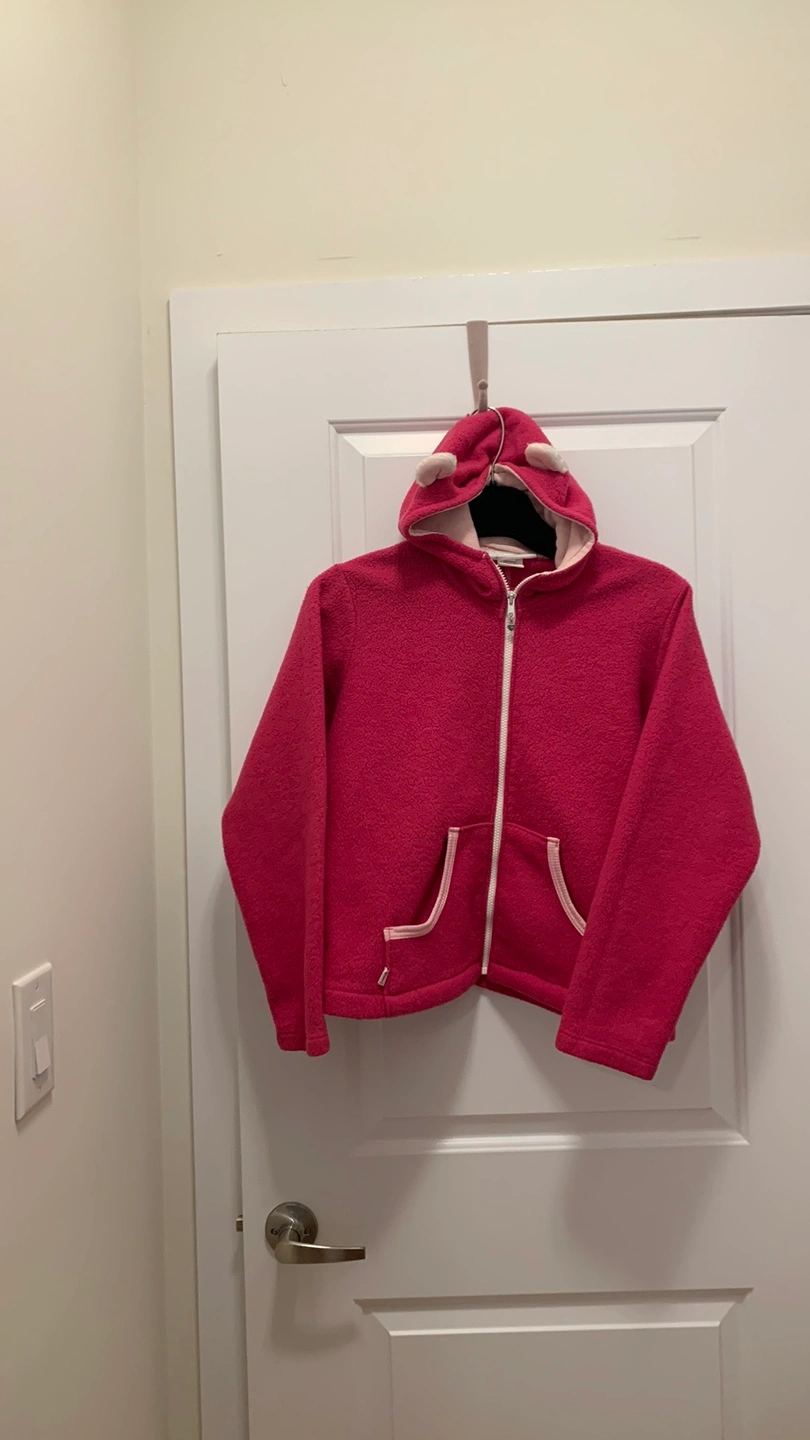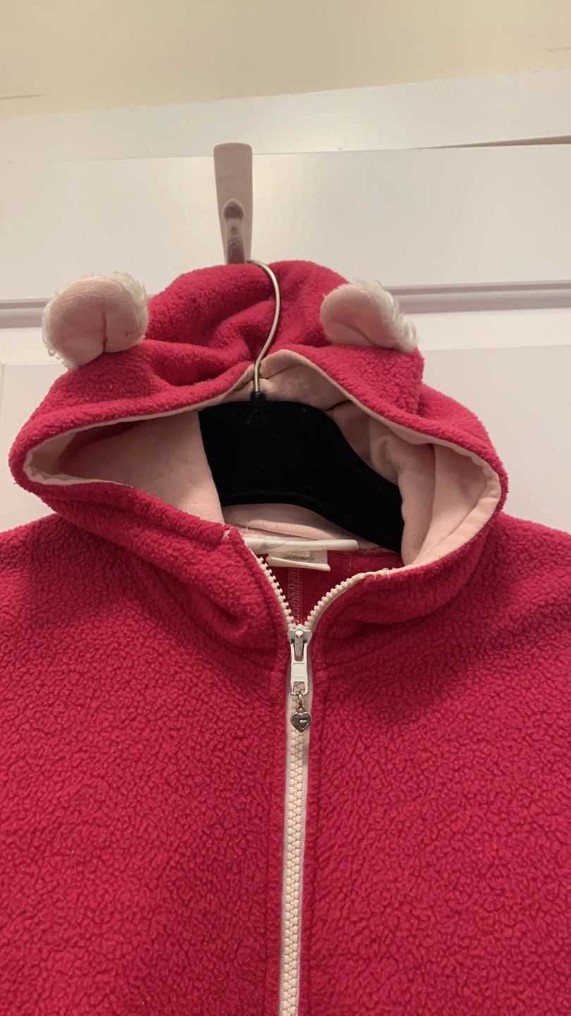 Cute kids pink fleece hoodie with bear ears and a pink and white lining. Size: medium