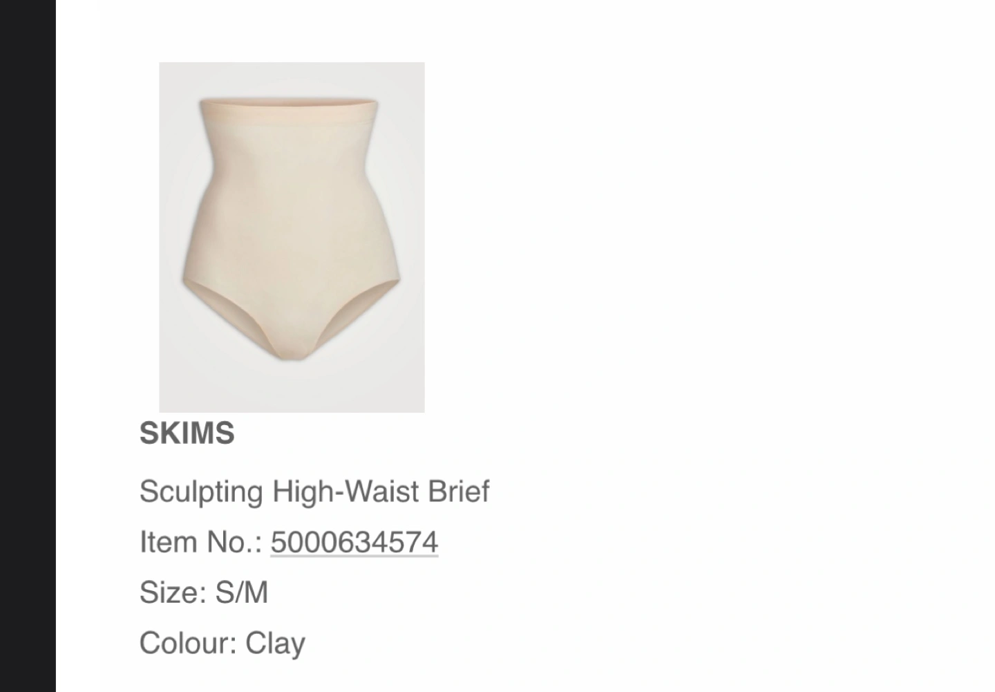 Skims Sculpting High Waisted Brief in size S/M in the colour Clay.